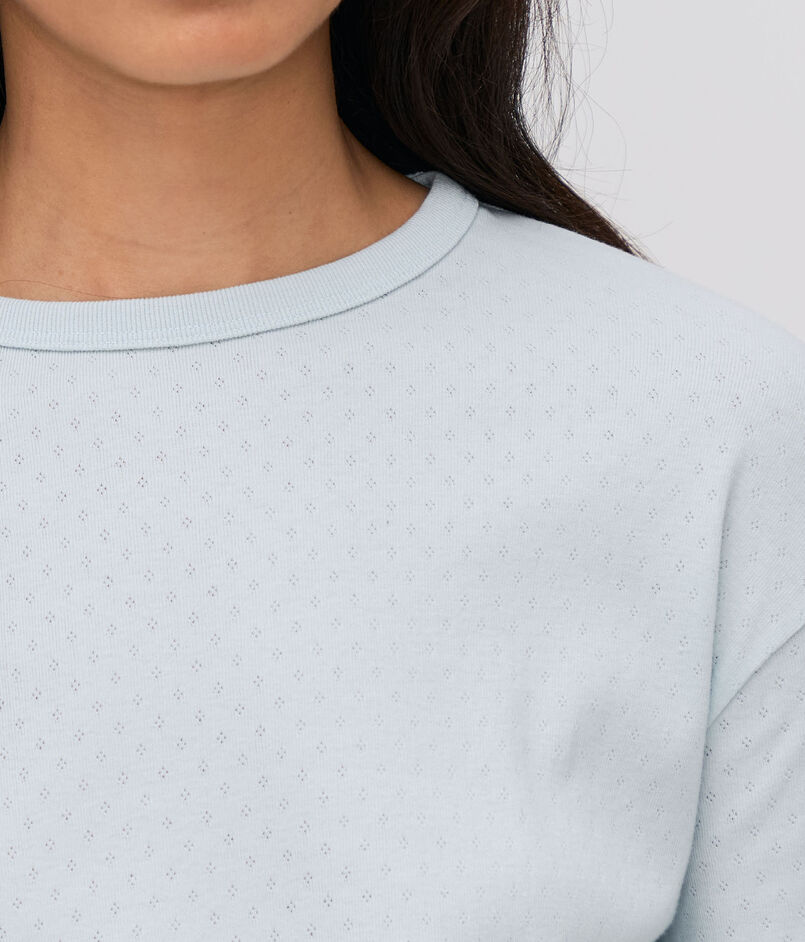 シャリっとした独特な風合いのジャージにフェミニンなレースを施しました。