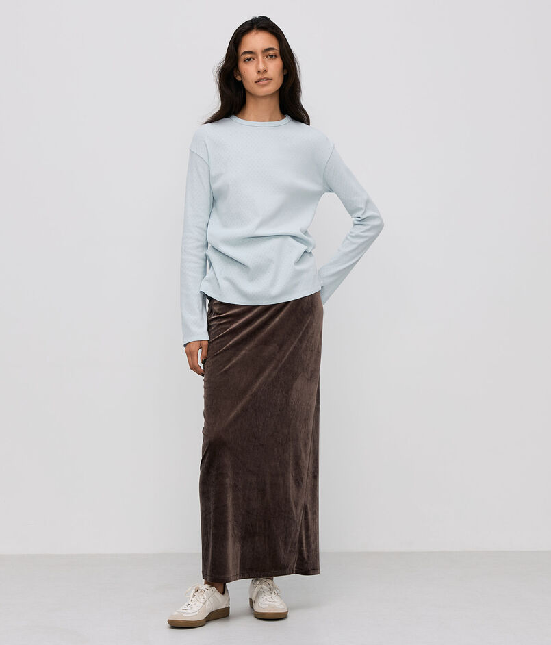ハーフパンツやミニボトムと合わせたスタイリングがおすすめ。