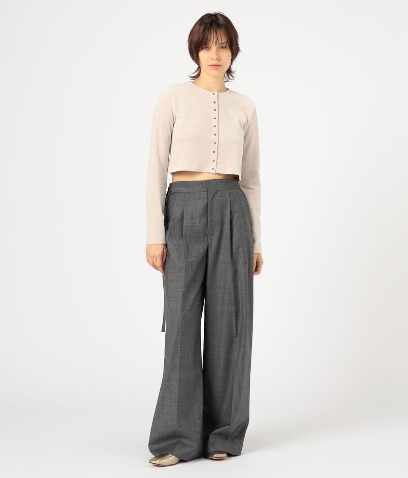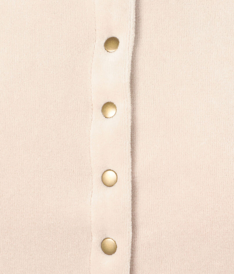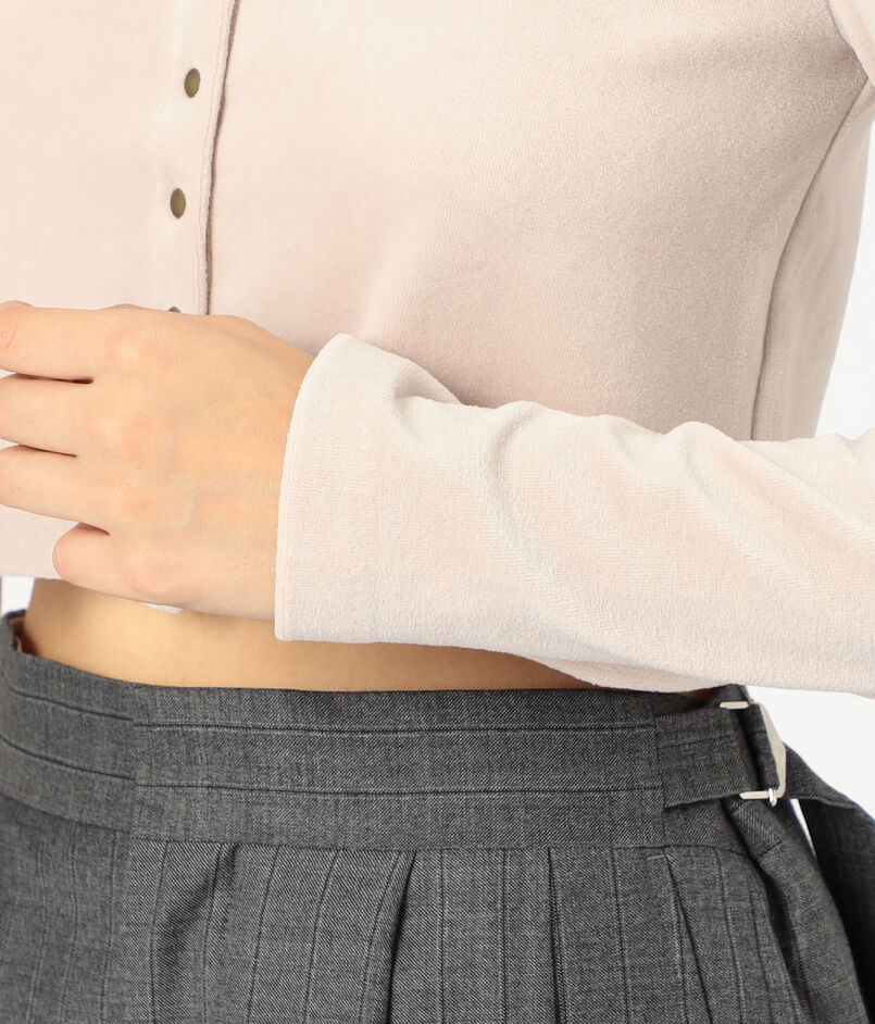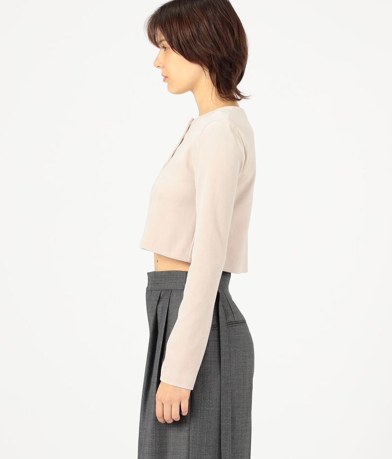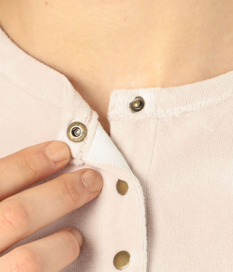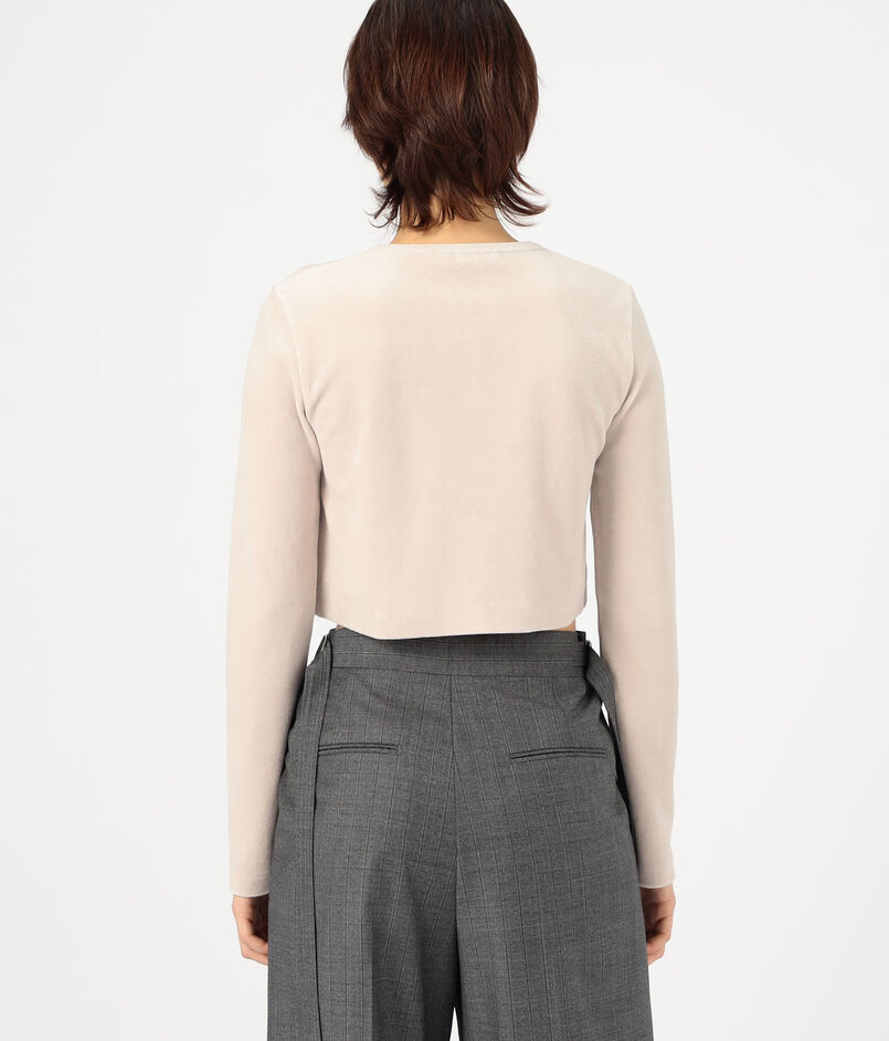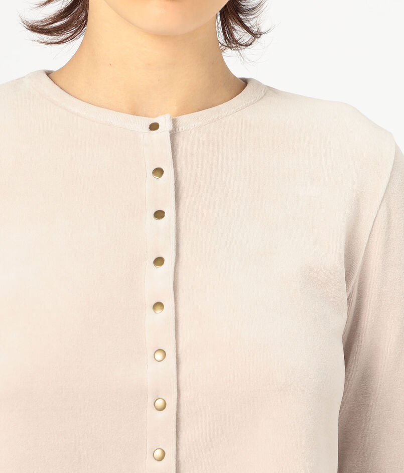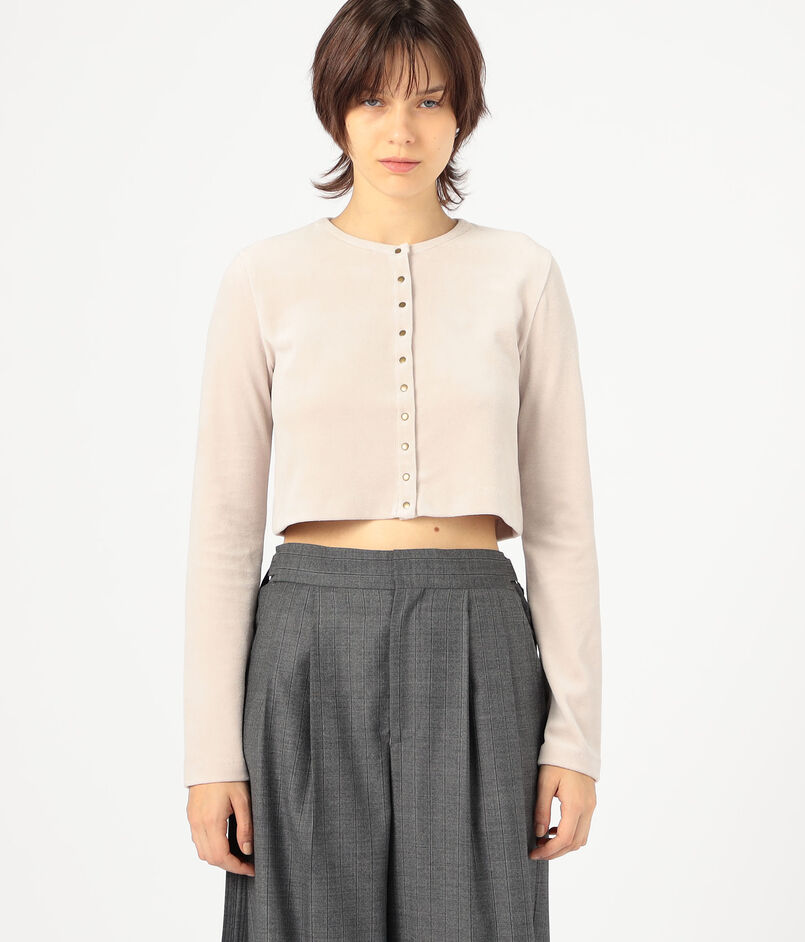 毛足が密でソフトな肌触りが魅力の、ベロアジャージー素材を使用したカーディガン。