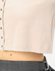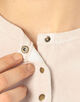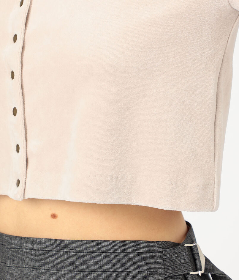 小さなスナップボタンを並べたクラシカルなデザインと大胆なショート丈で、新鮮なスタイリングを楽しめるアイテム。