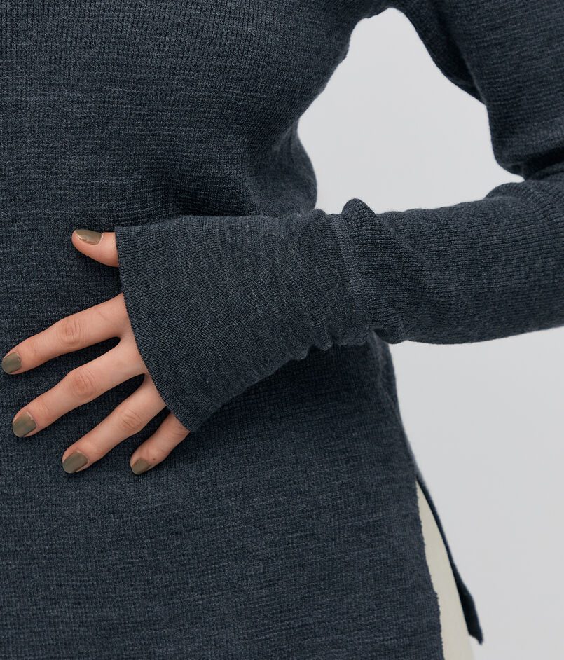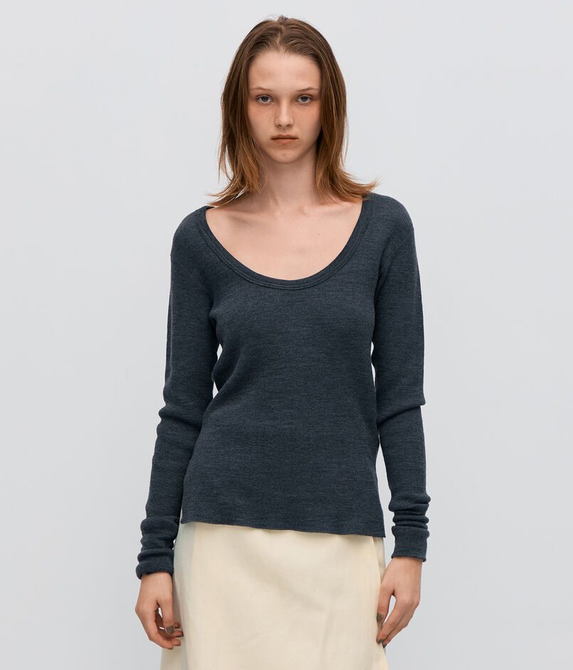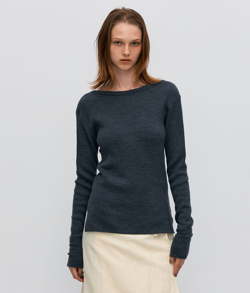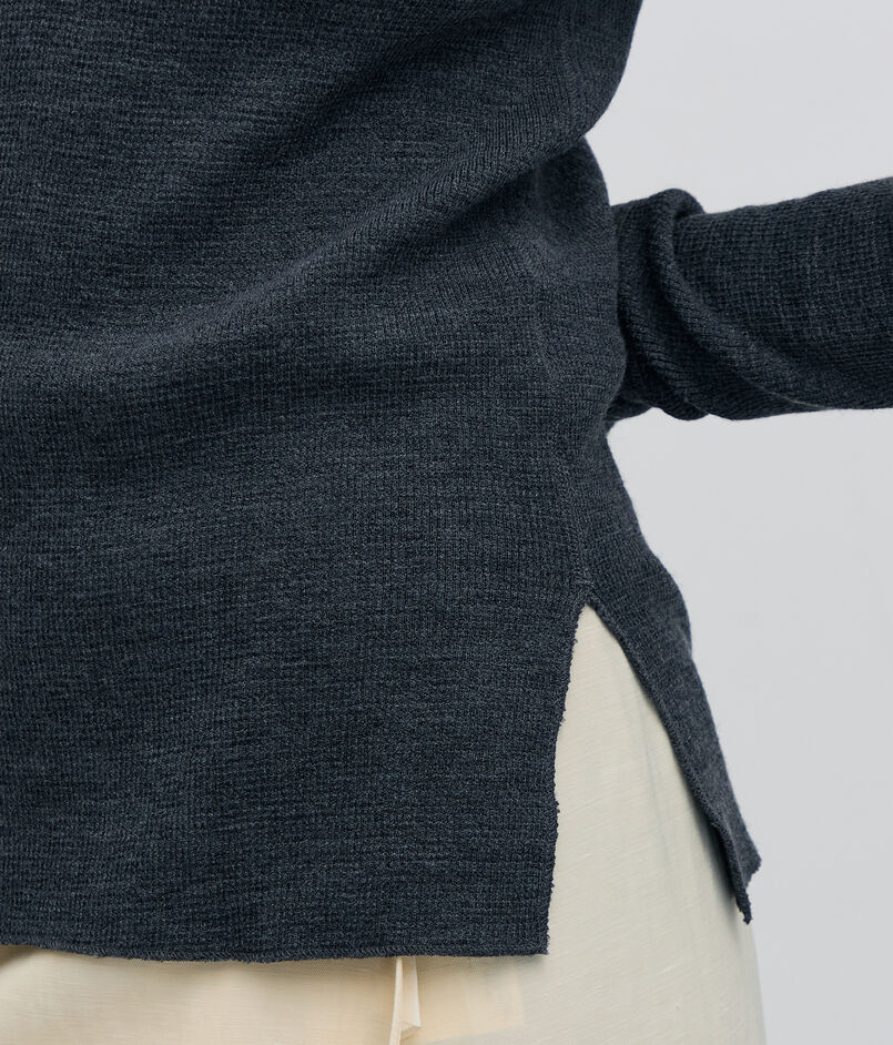 体にフィットするきれいなシルエットが特徴で、一枚着としてはもちろん冬のインナーとしても活躍するアイテムです。