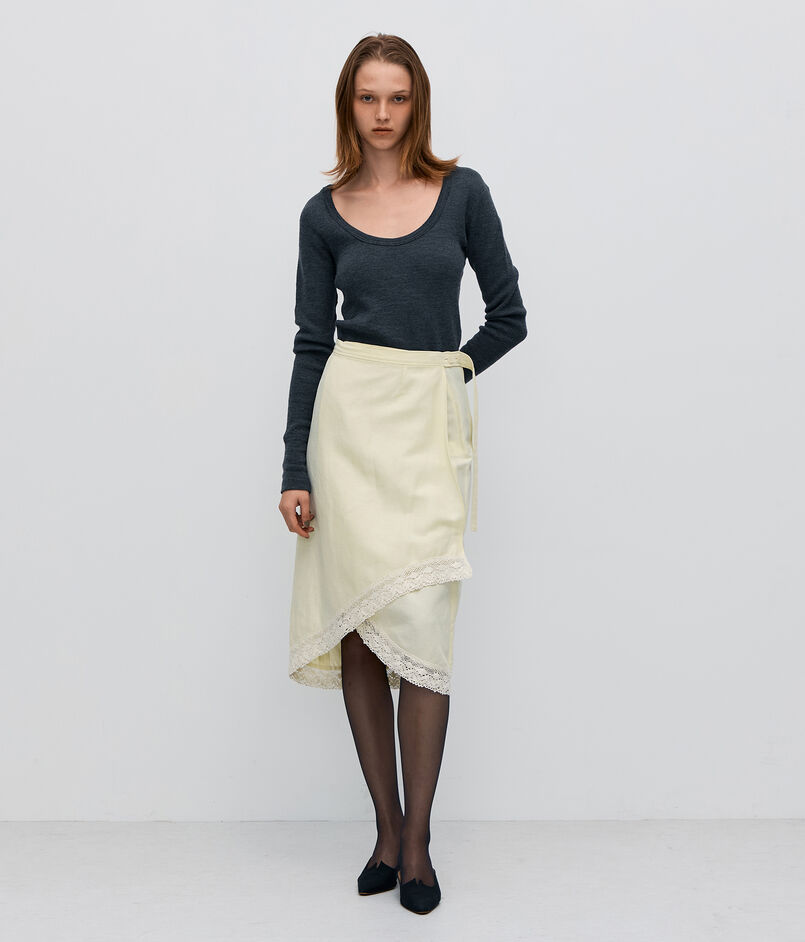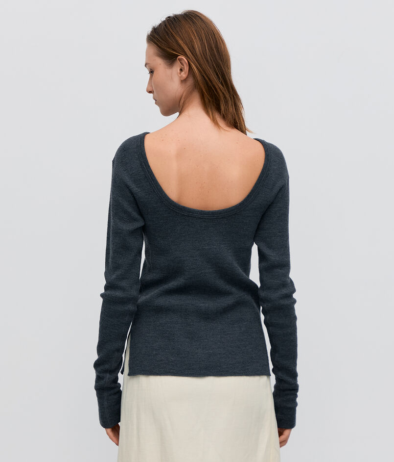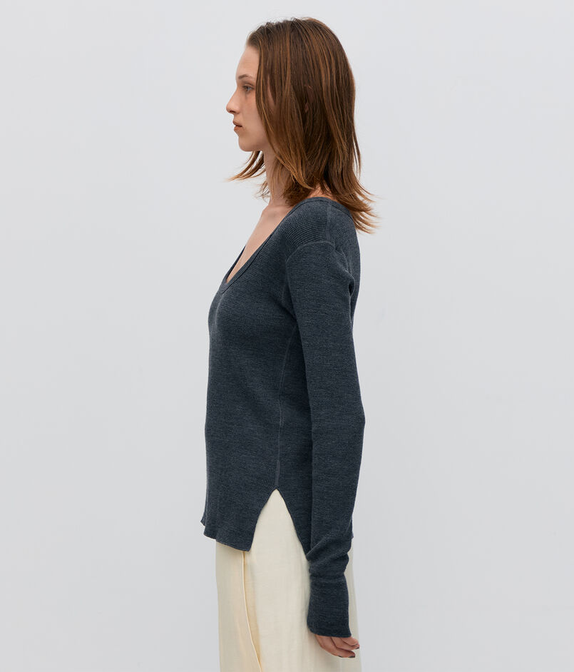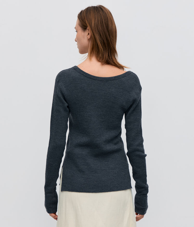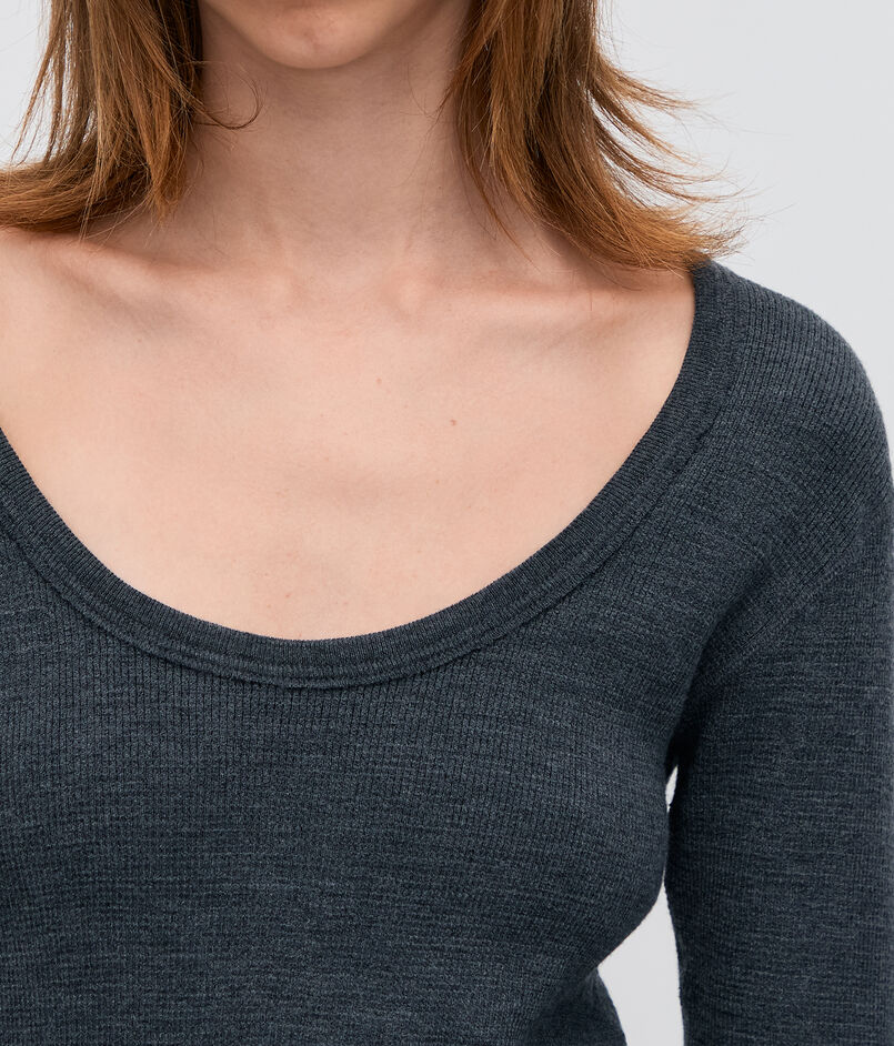体にフィットするきれいなシルエットが特徴で、一枚着としてはもちろん冬のインナーとしても活躍するアイテムです。