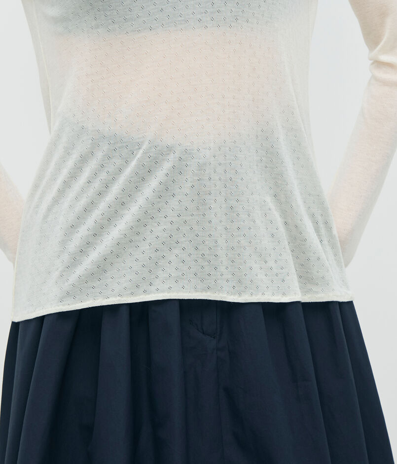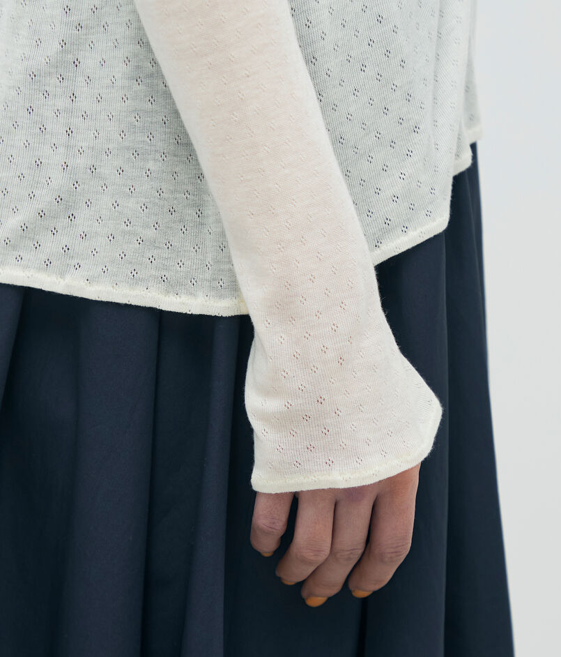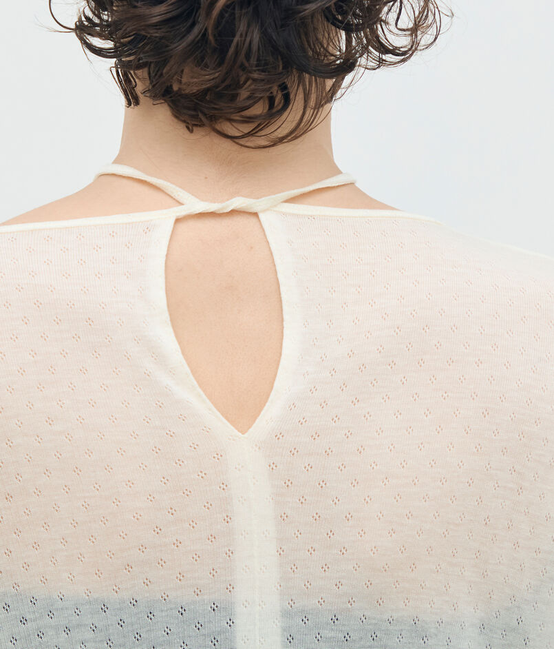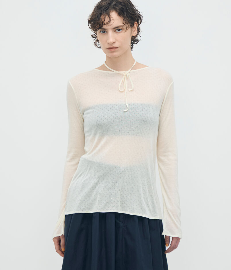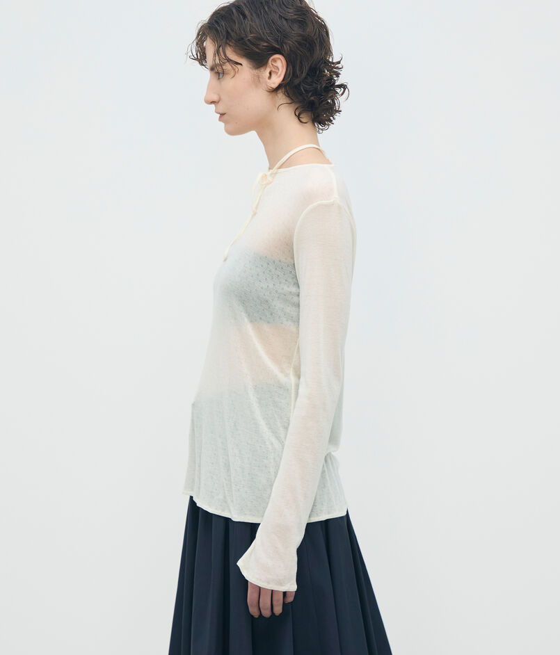 バックスタイルの涙開きと華奢なリボンディテールがポイントのロングスリーブプルオーバー。