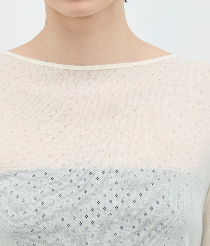 無地のセルロースシルクジャージーをベースに、表情豊かなメッシュ柄のフライス組織に仕上げたシリーズ。