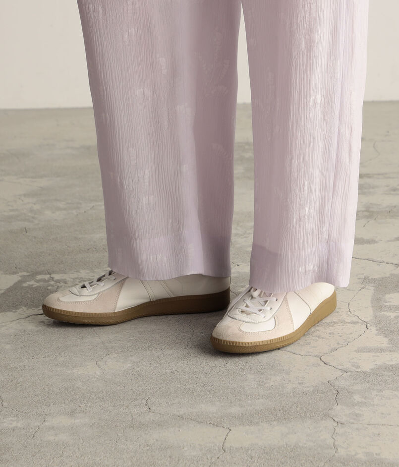 ややワイドでストレートシルエットのパンツは、どんなアイテムとも相性抜群のアイテム。