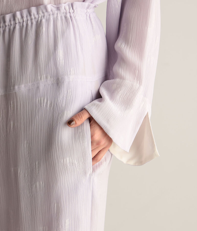 キュプラとレーヨン素材の楊柳二重織生地にすずらん柄のジャガードを施したシリーズ。