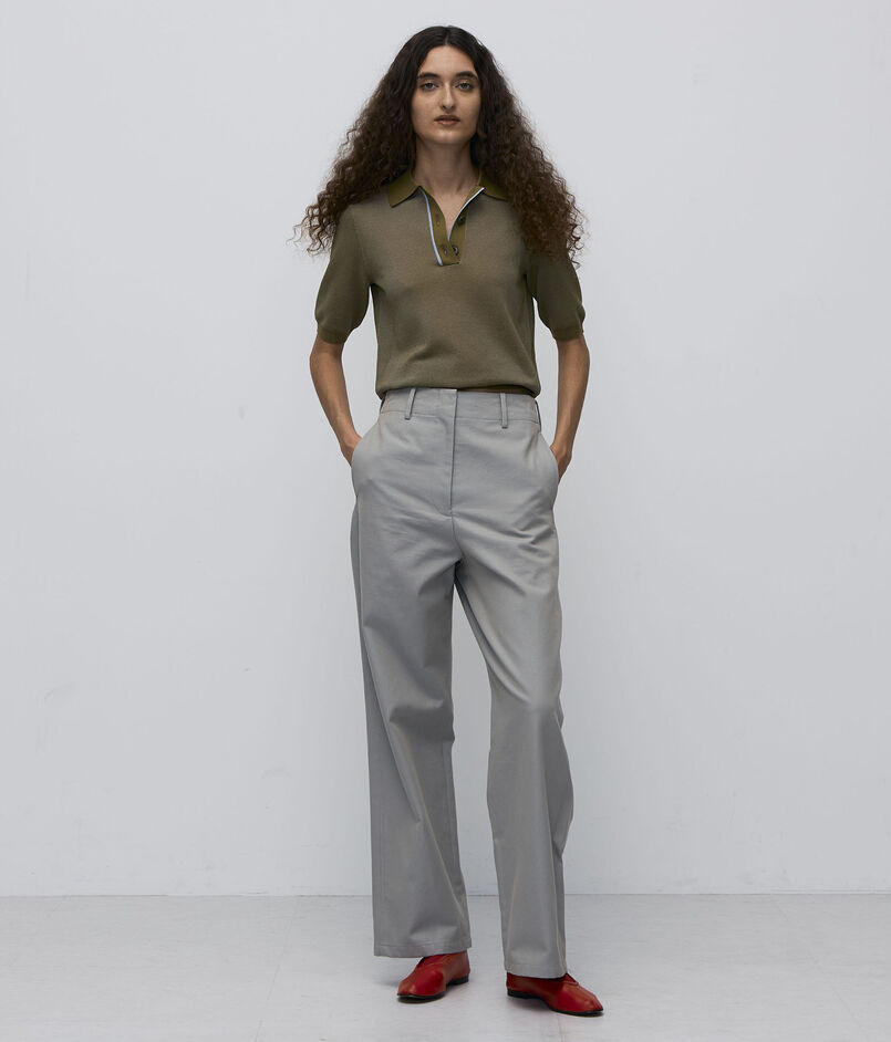 シンプルなストレートシルエットのパンツ。