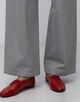 日常的に着られるチノパンをシックな印象になるようシャンブレーの配色にこだわって仕上げています。
