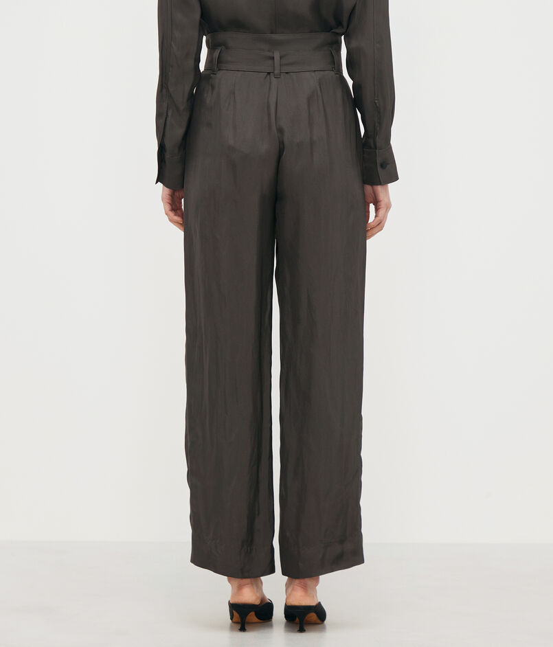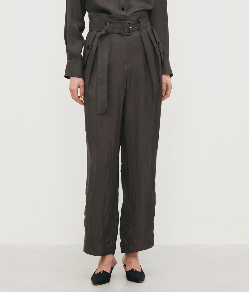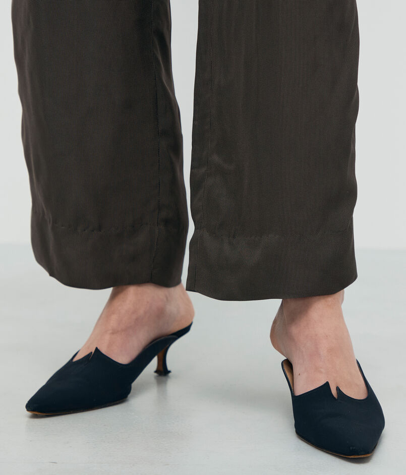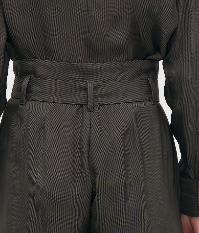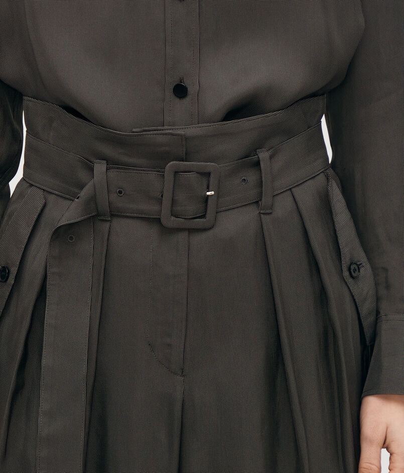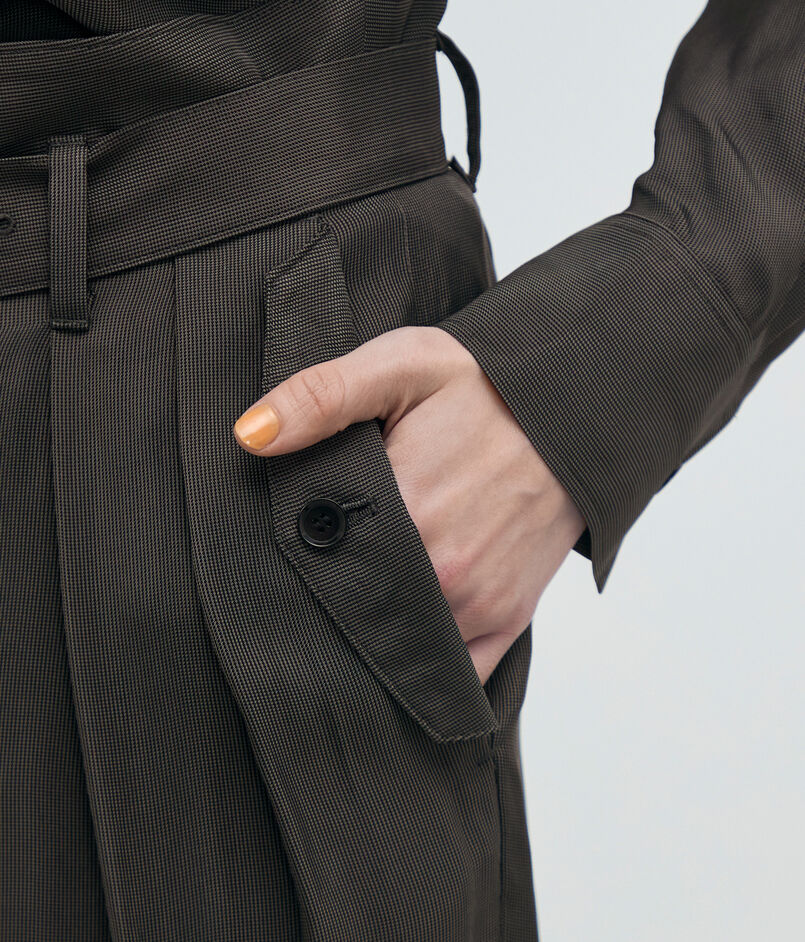 腰まわりにほど良いゆとりと立体感を演出し、生地の落ち感と相まって、構築的でありながらも柔らかなシルエットに仕上げています。