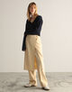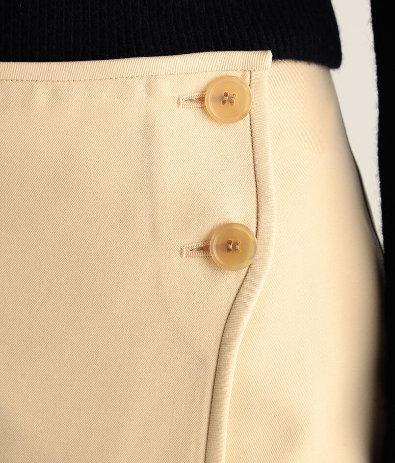 ほど良い光沢感と柔らかな肌触りが特徴のウールレーヨンのツイル素材を使用したスカート。