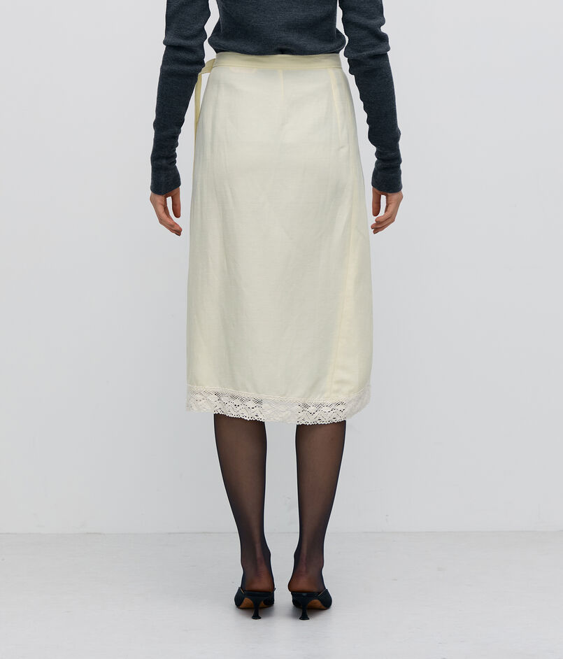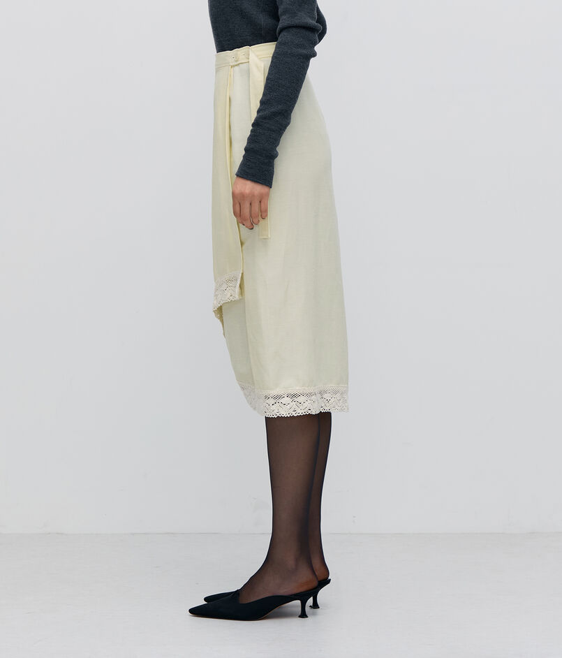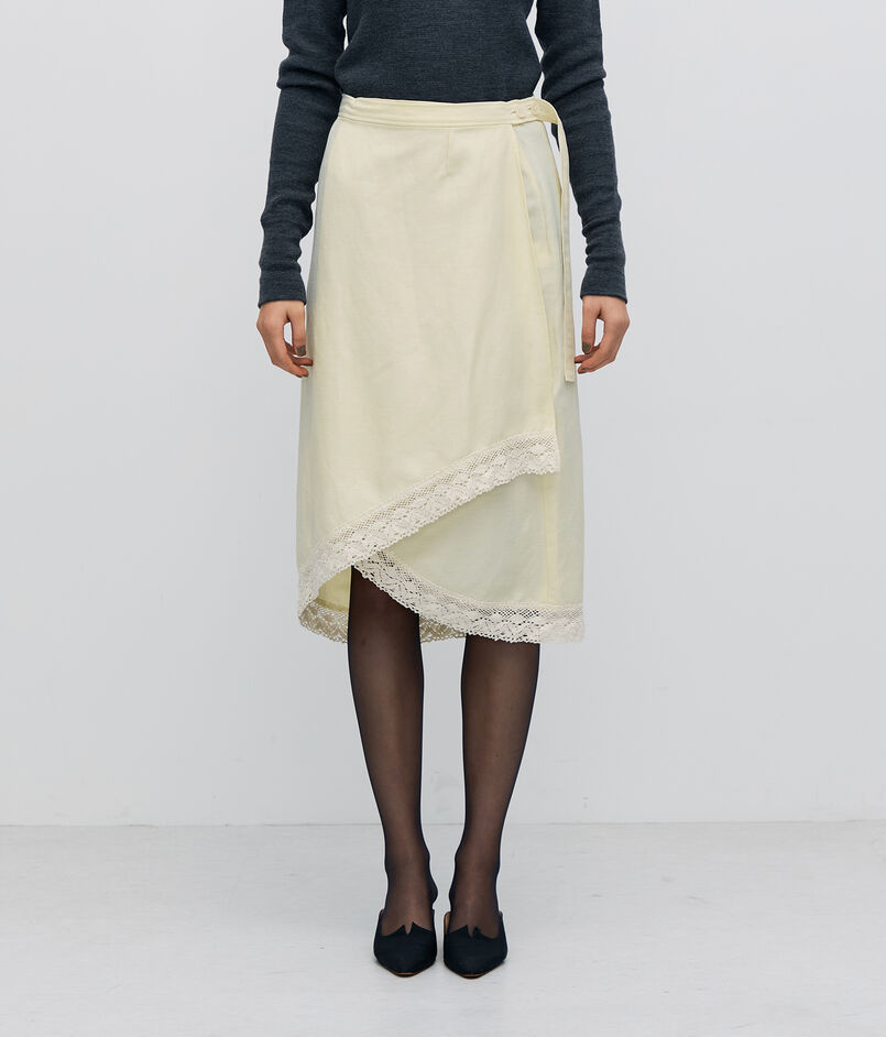 ナイロンリネンビンテージギャバジン レースコンビラップスカート
