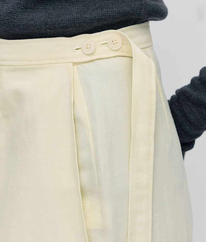 上品な光沢を持つナイロンリネン素材を使用し、秋冬の起毛感のあるアイテムともスタイリングの相性が良く、シーズンレスで活躍します。