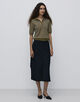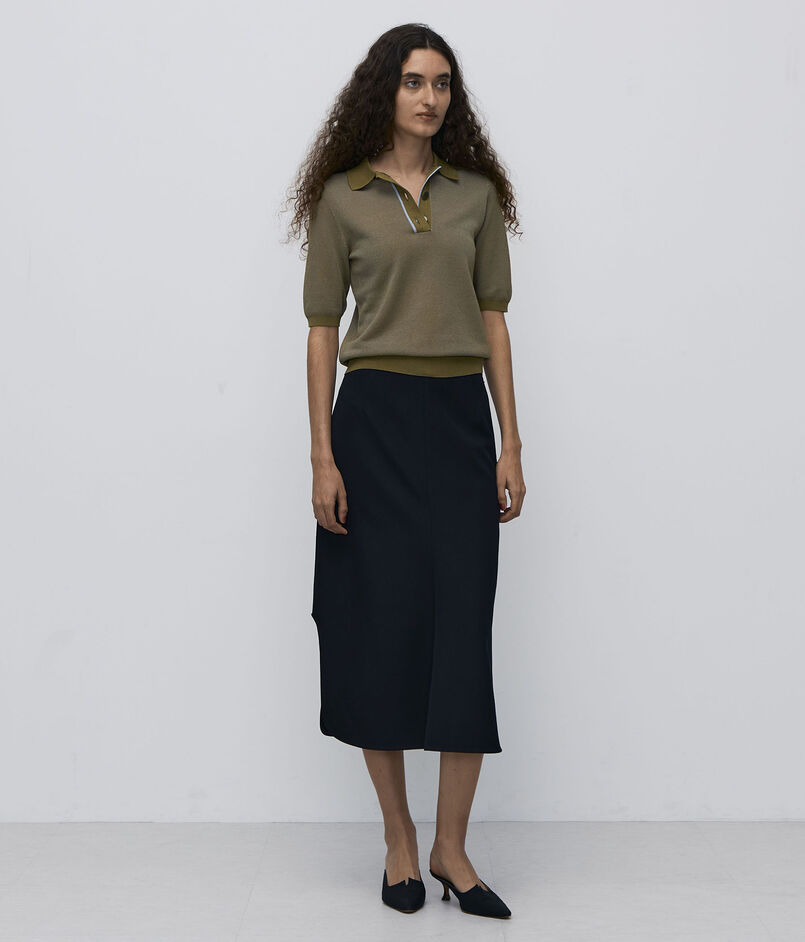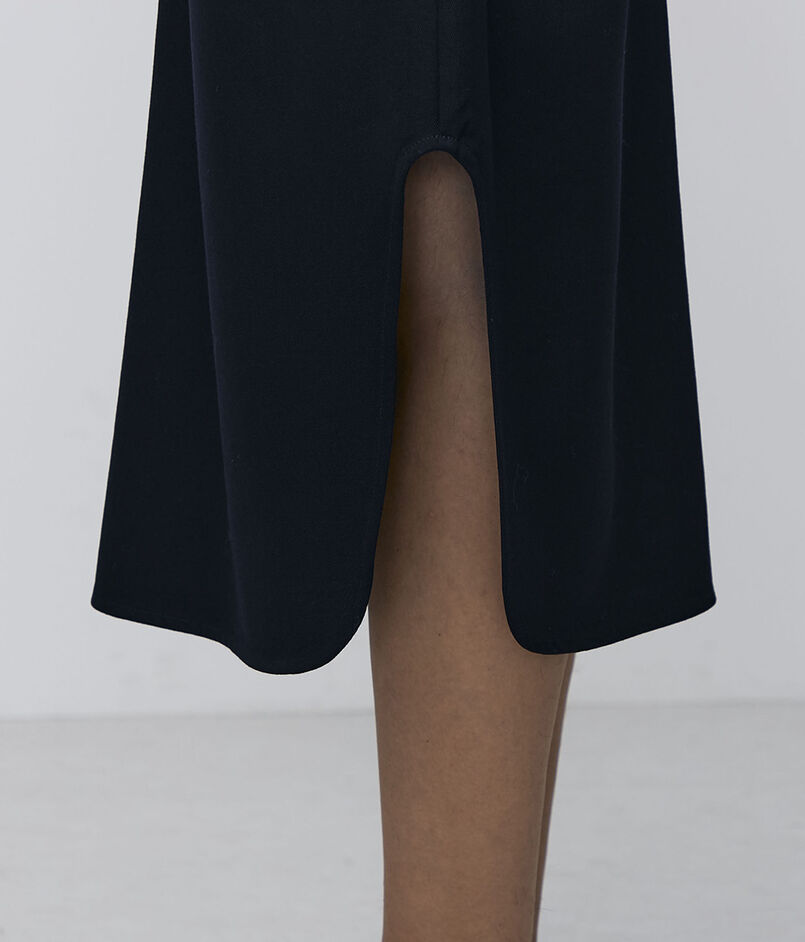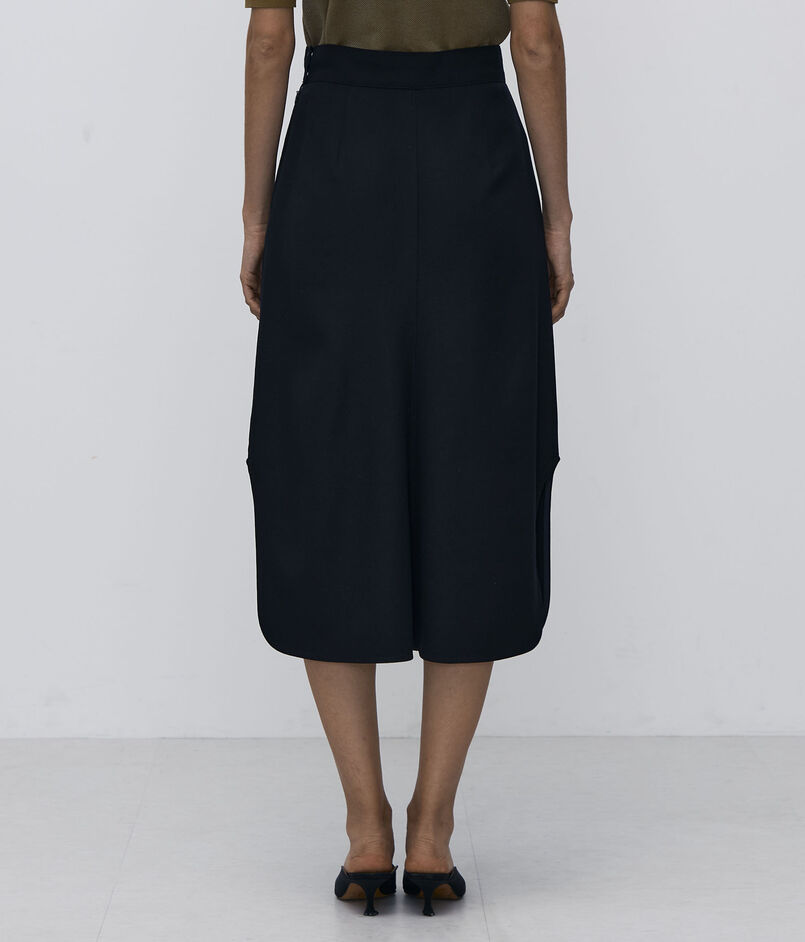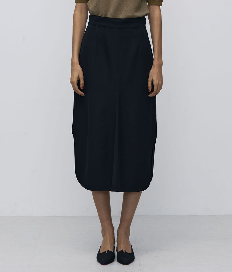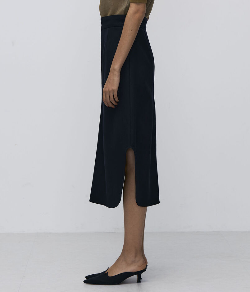 深めで丸みのあるスリットがデザインポイントのスカート。