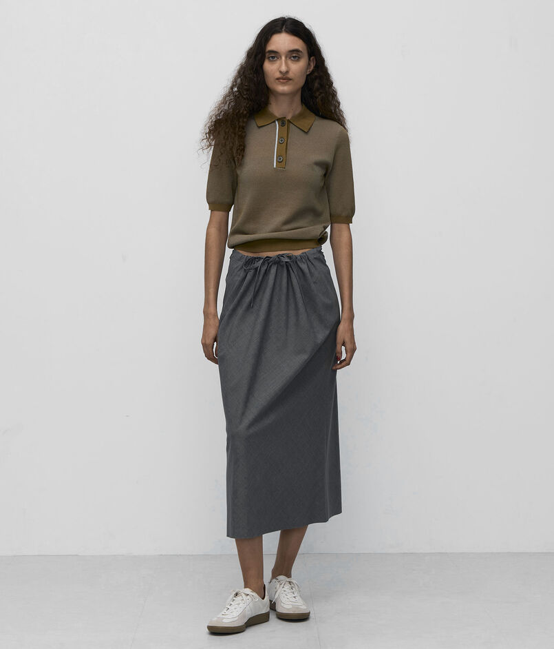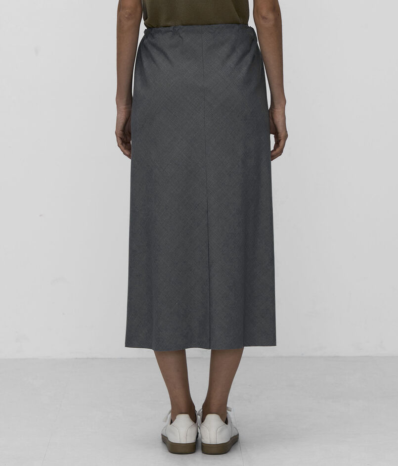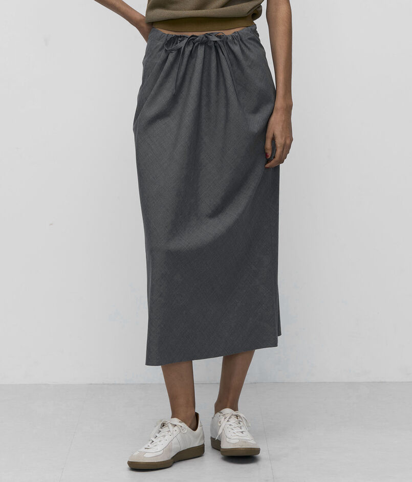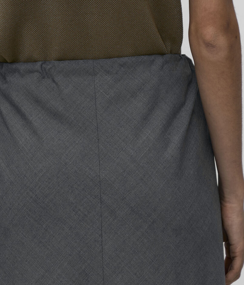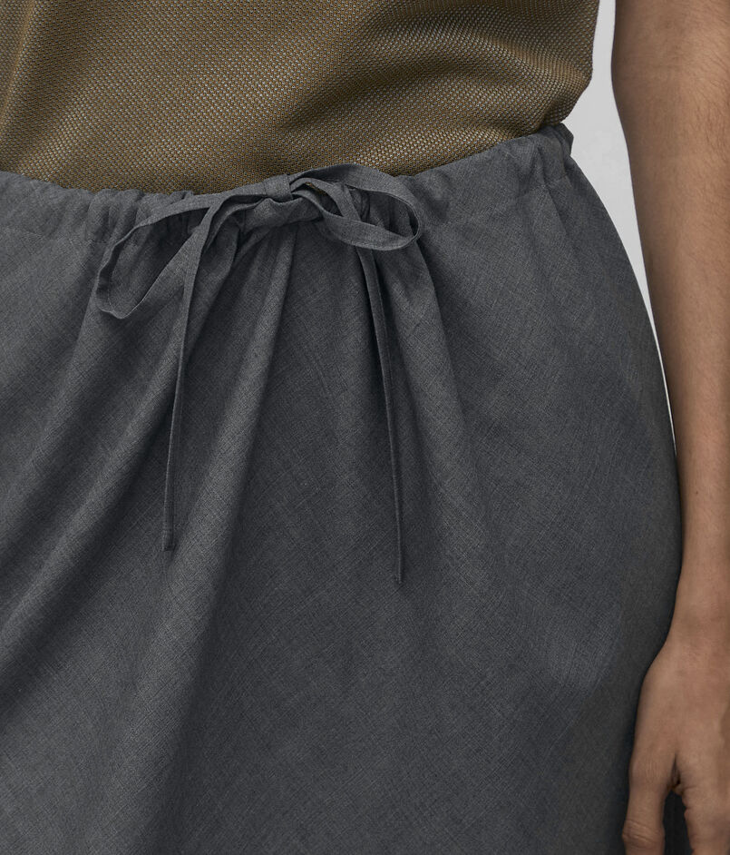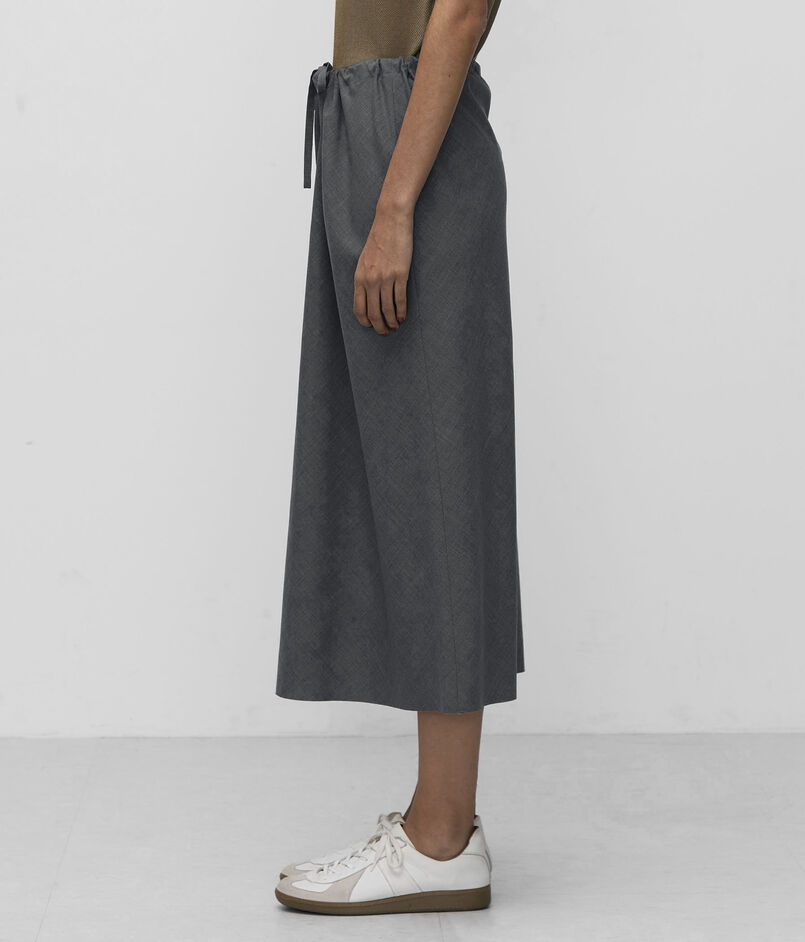 ウエストのドローコードでギャザーを寄せることで分量のあるドレープを出していただけます。