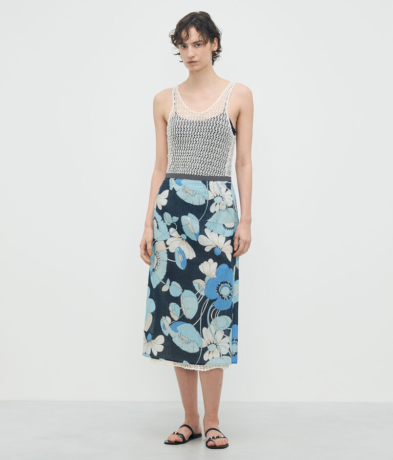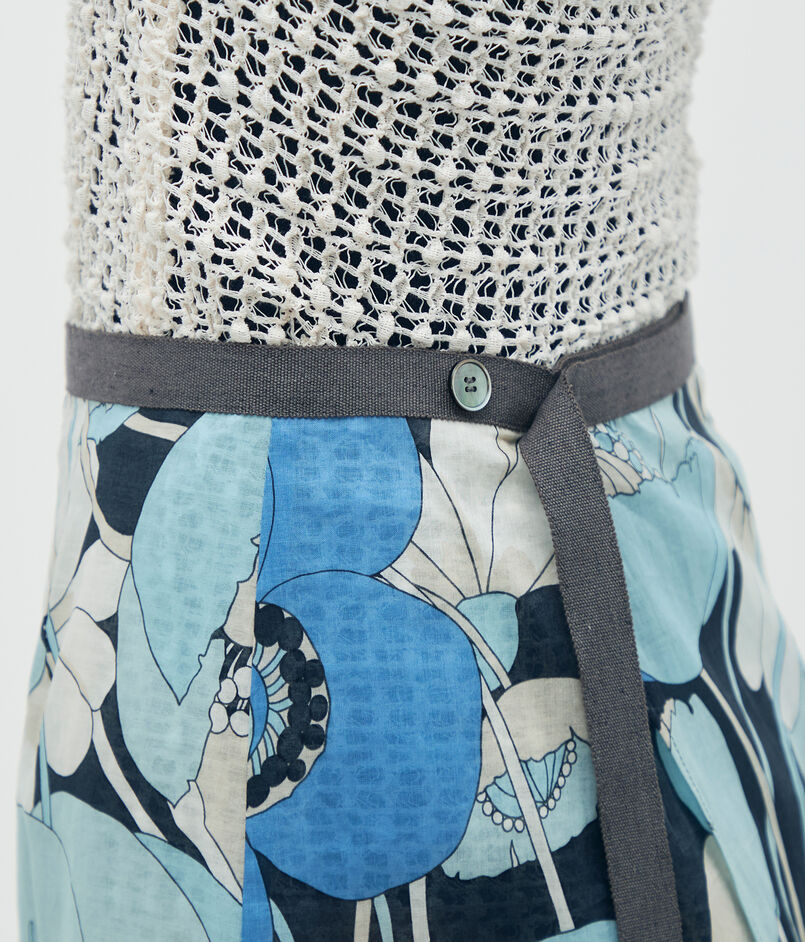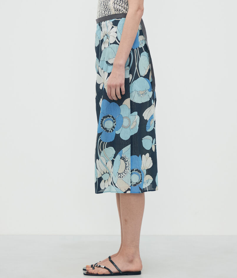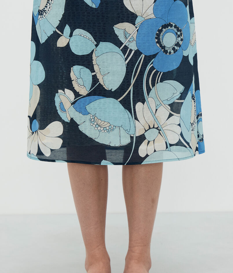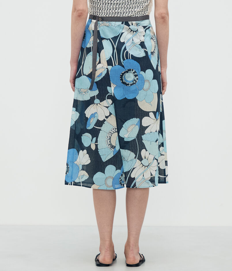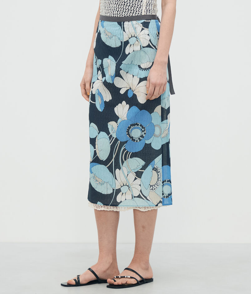 ブルーフラワープリント ラップスカート