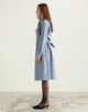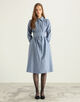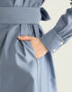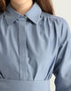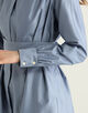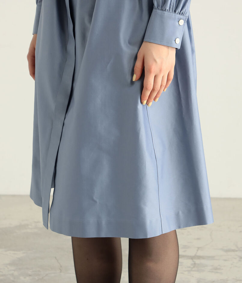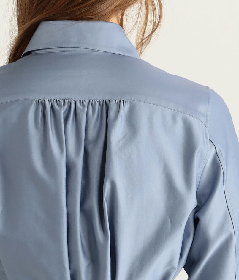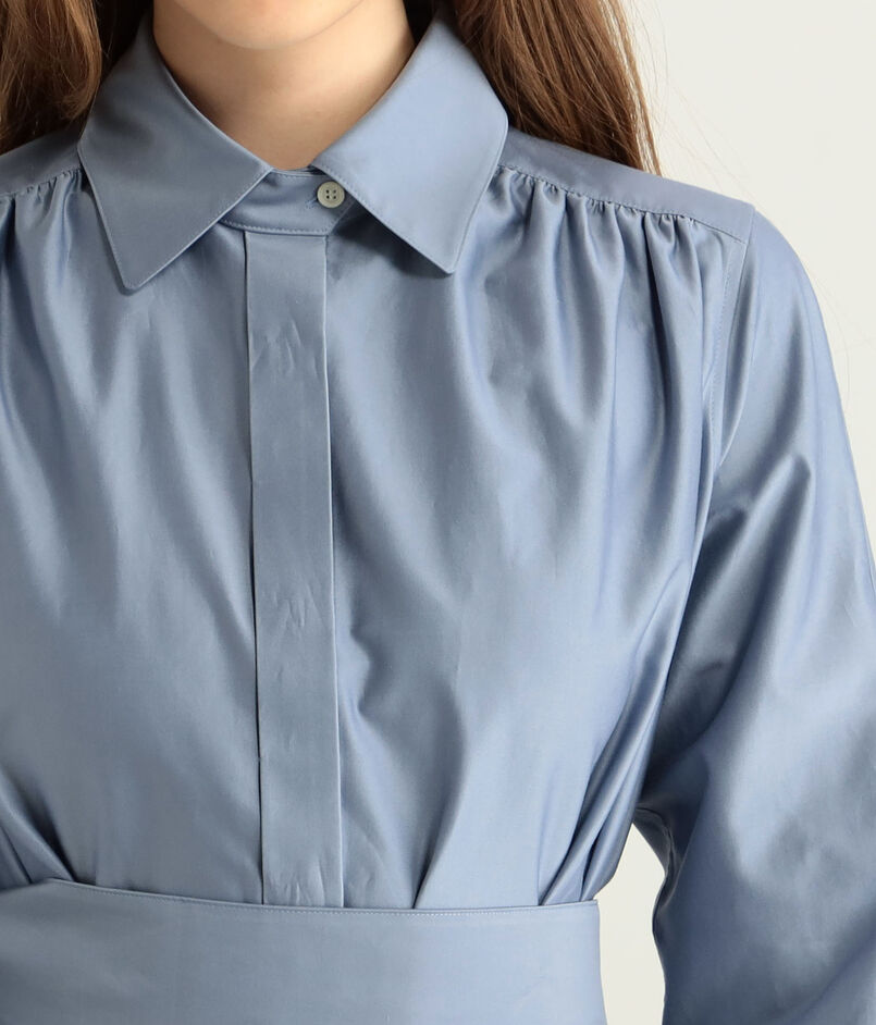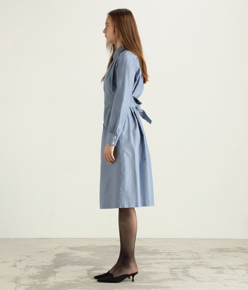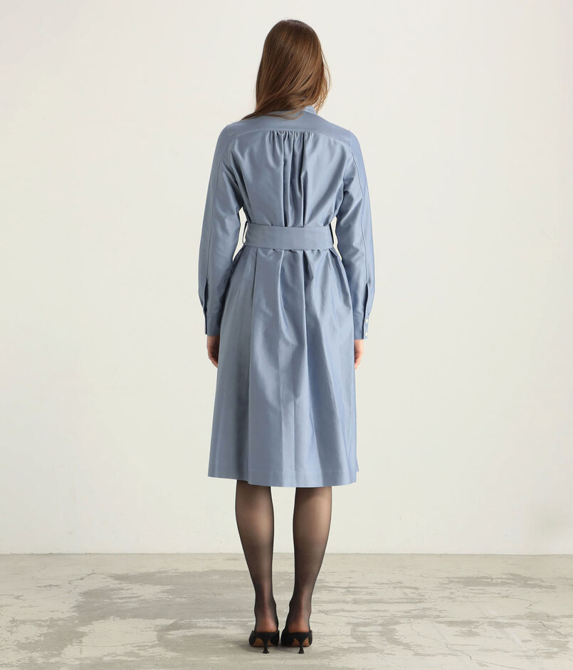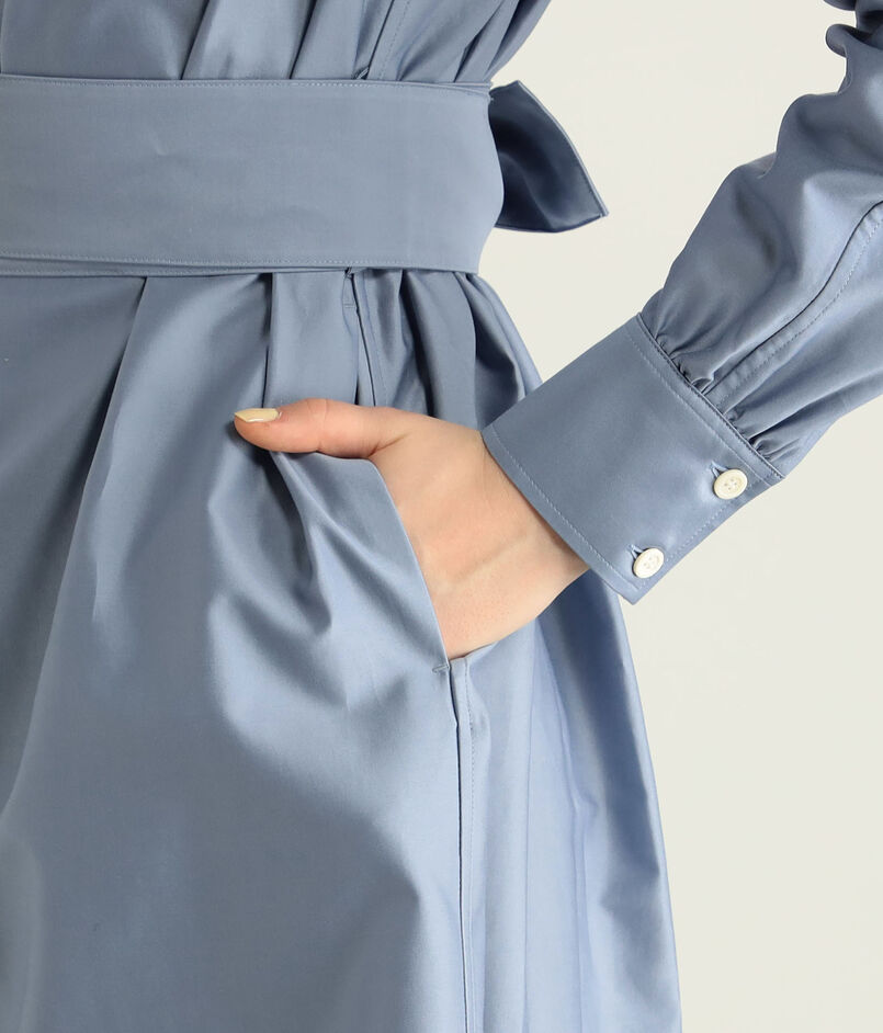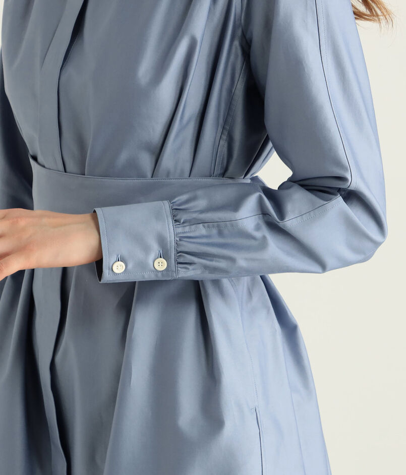 細身シルエットのシャツドレスは、同素材の取り外し可能なベルトが付いており、ウエストを絞ることですっきりとした印象に。