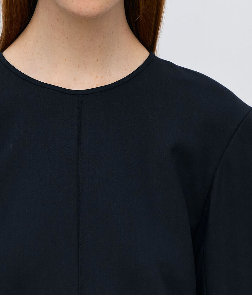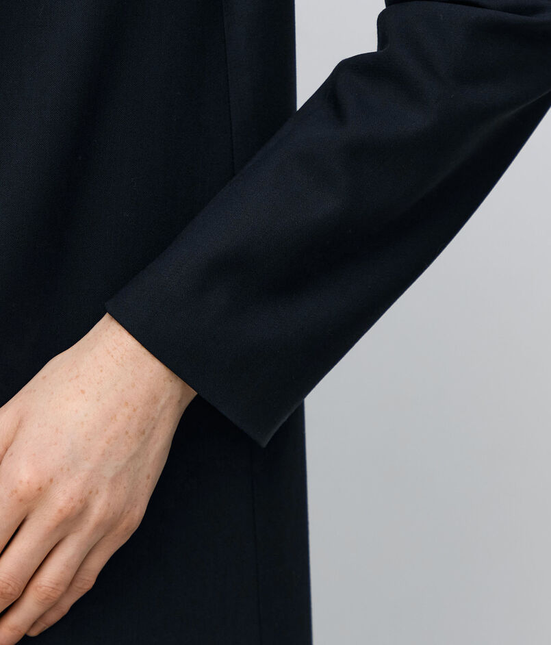 ベーシックながらもシルエットの綺麗さが際立つワンピースは、肩から胸周りはコンパクトに、