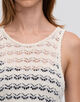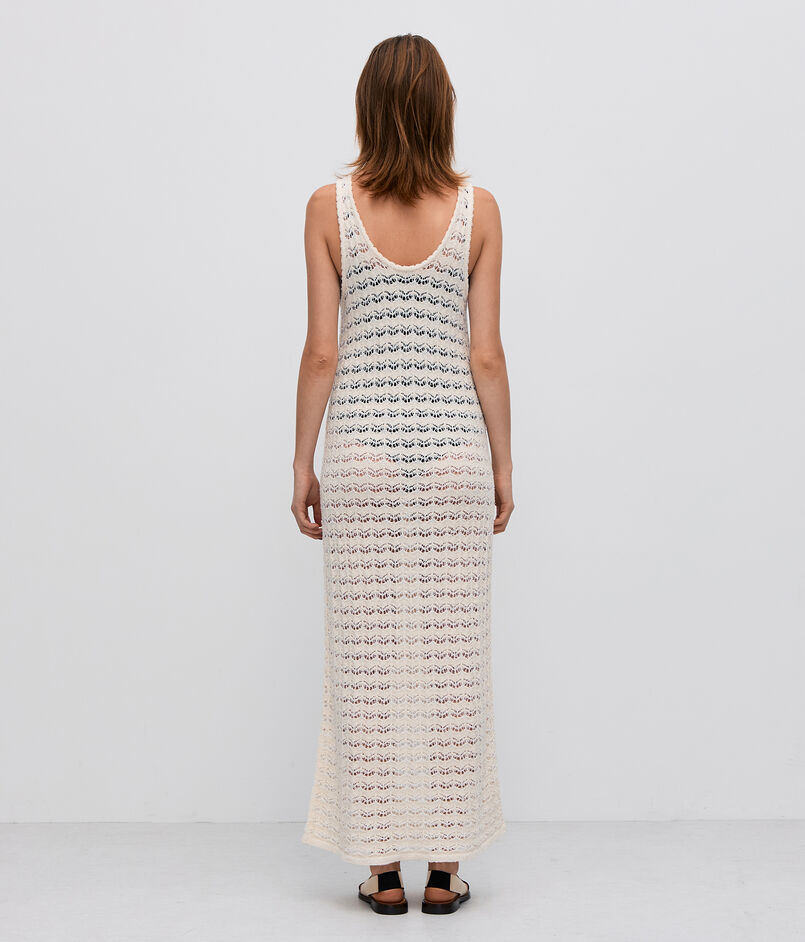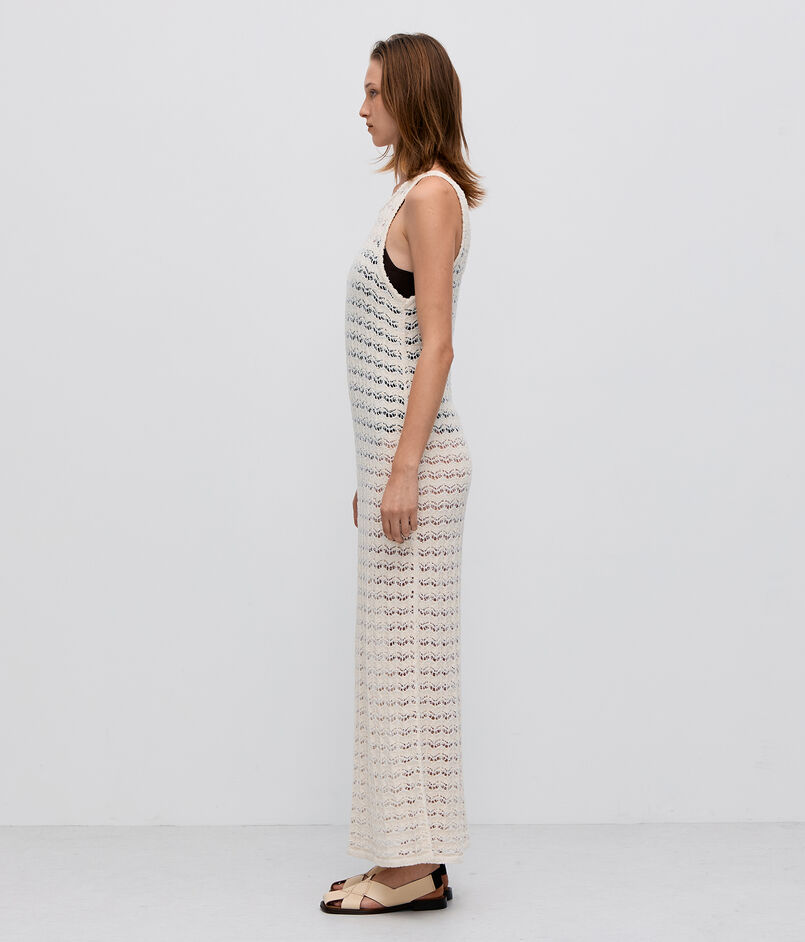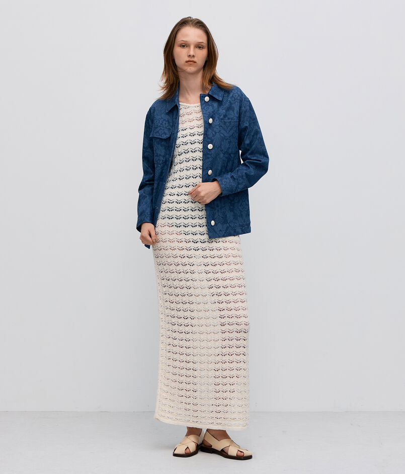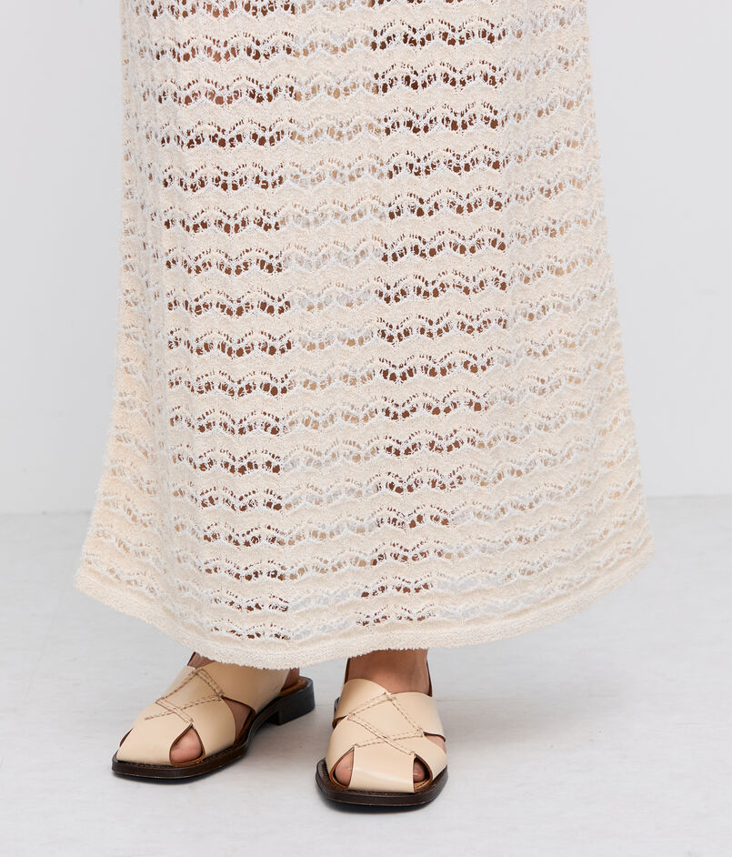 風合いや形状の違う同色の糸を組み合わせ、立体感のある透かしボーダー柄に仕上げました。