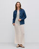 ウエストをベルトやシャツでブラウジングしたり、ロングベストのような重ね着をしたりと様々な着こなしを楽しんでいただけます。