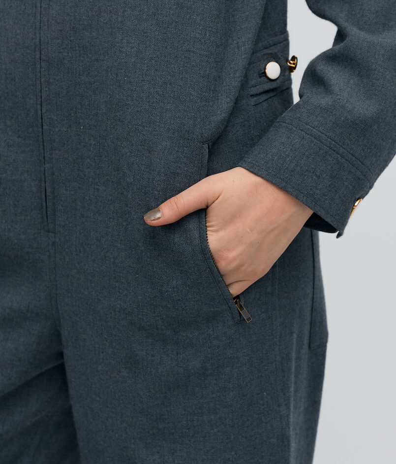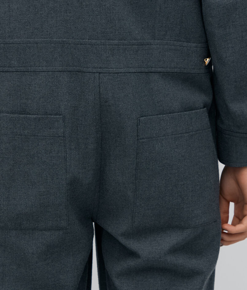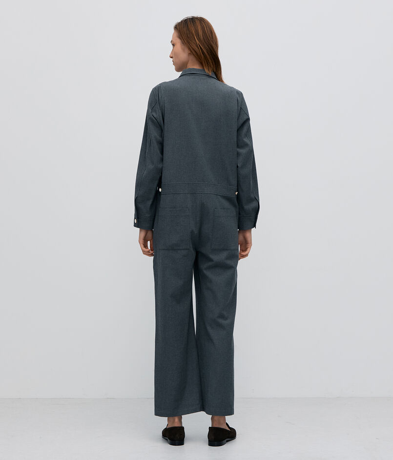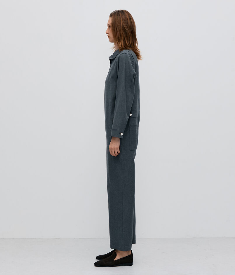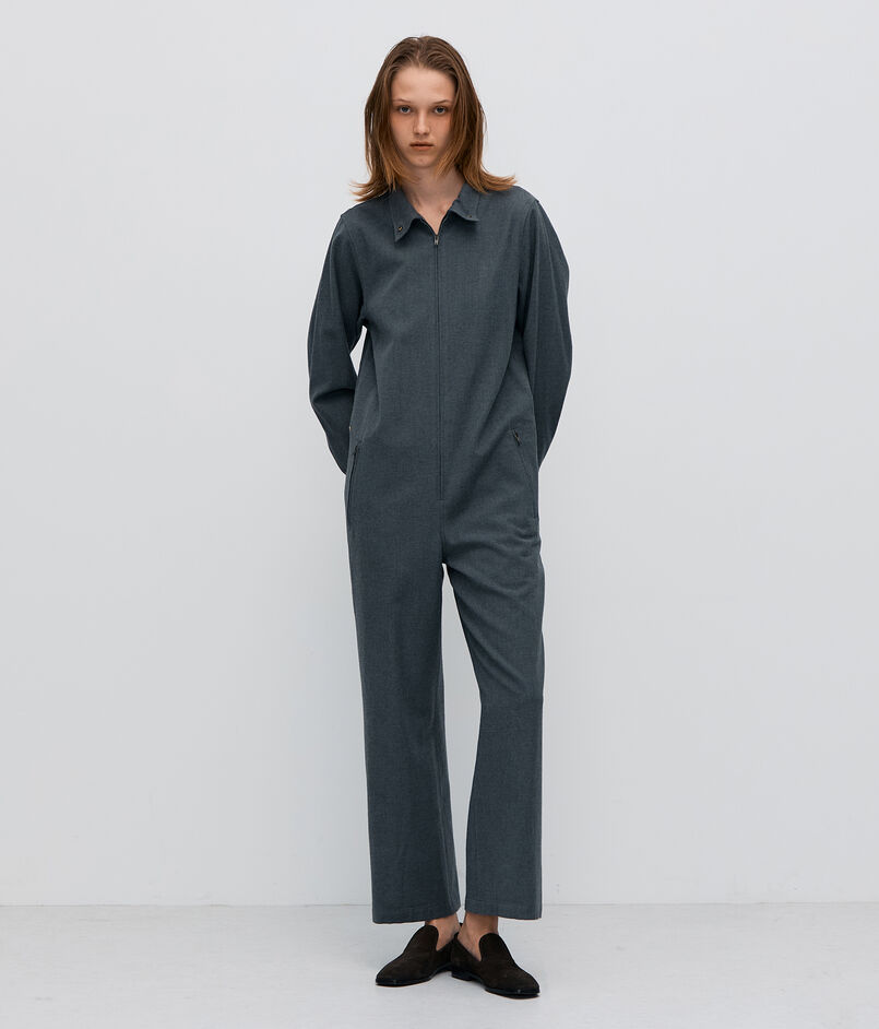 すっきりとしたシルエットが魅力の、ミニマルなオールインワン。