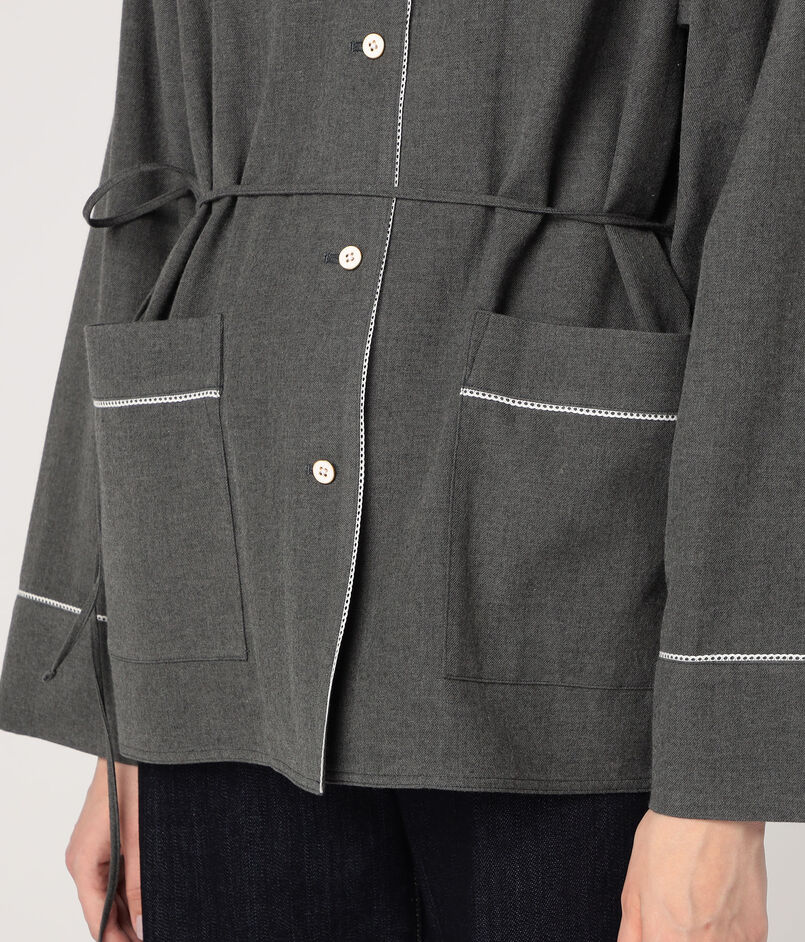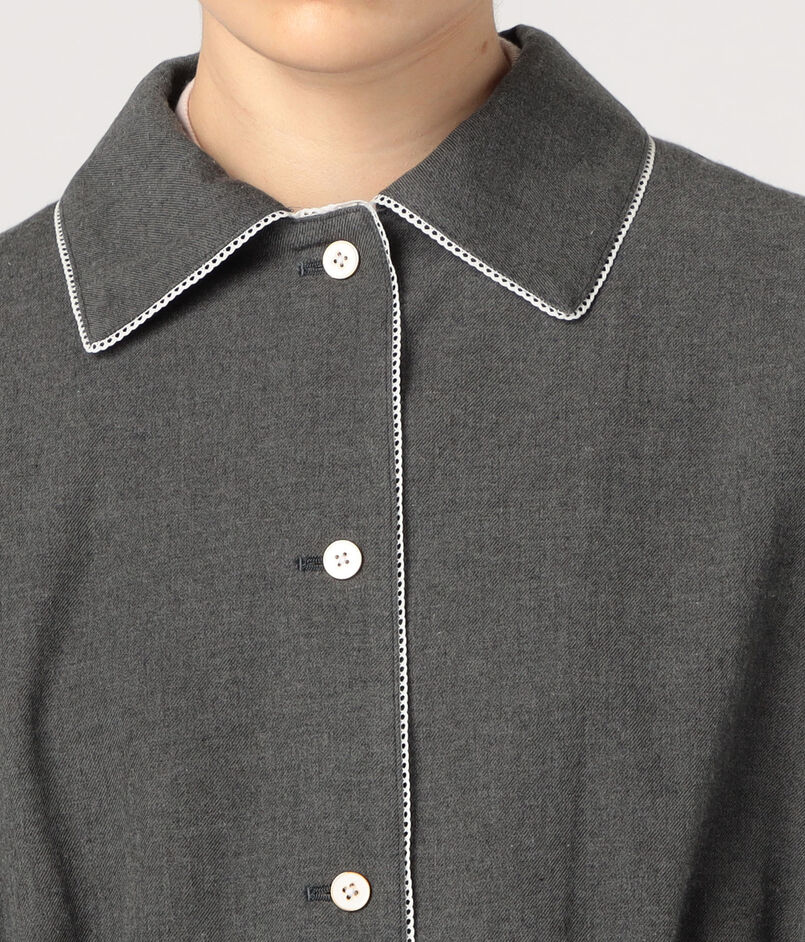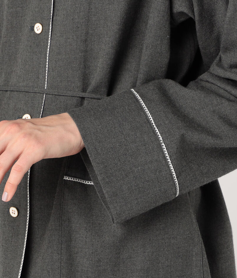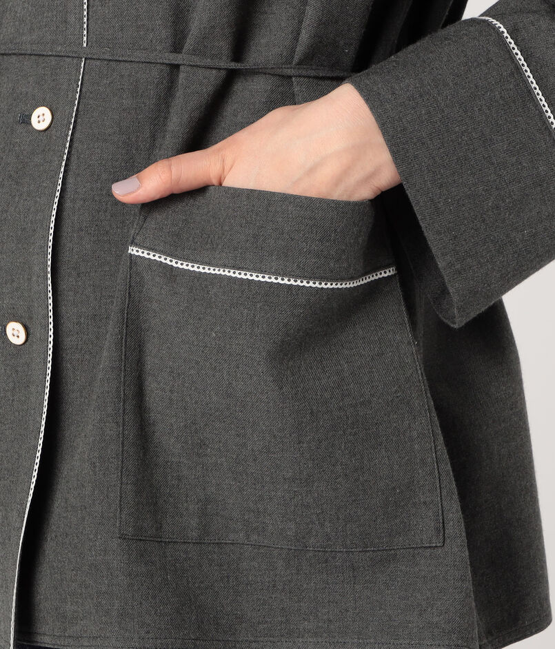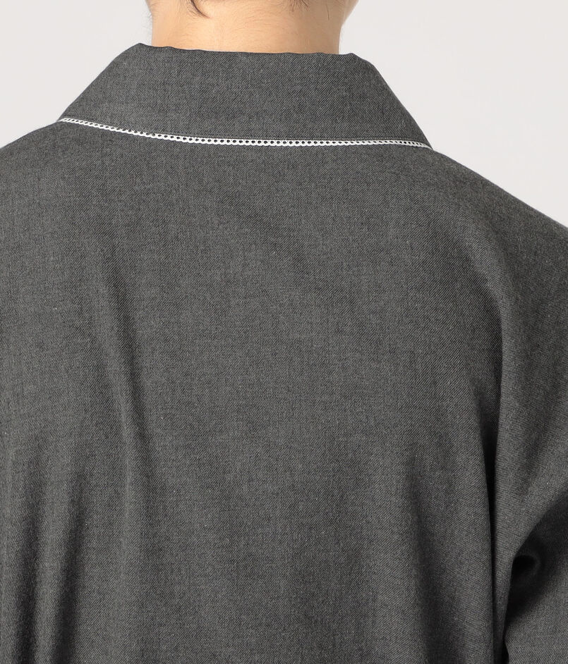 衿と前立てにレースパイピングを施し柔らかな印象に。