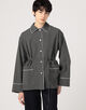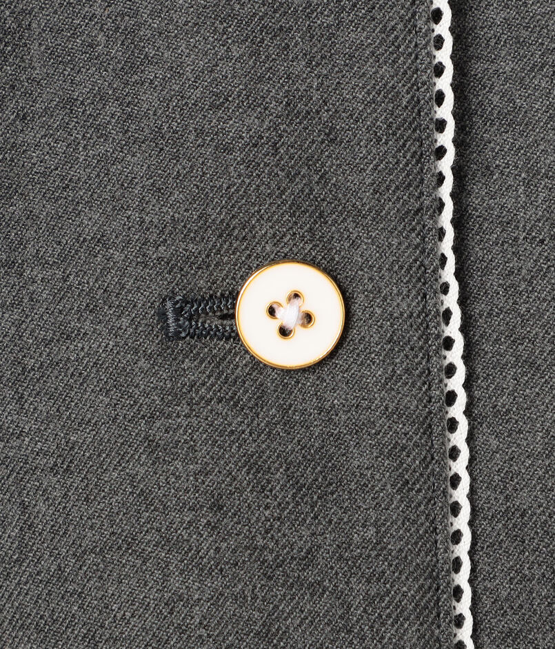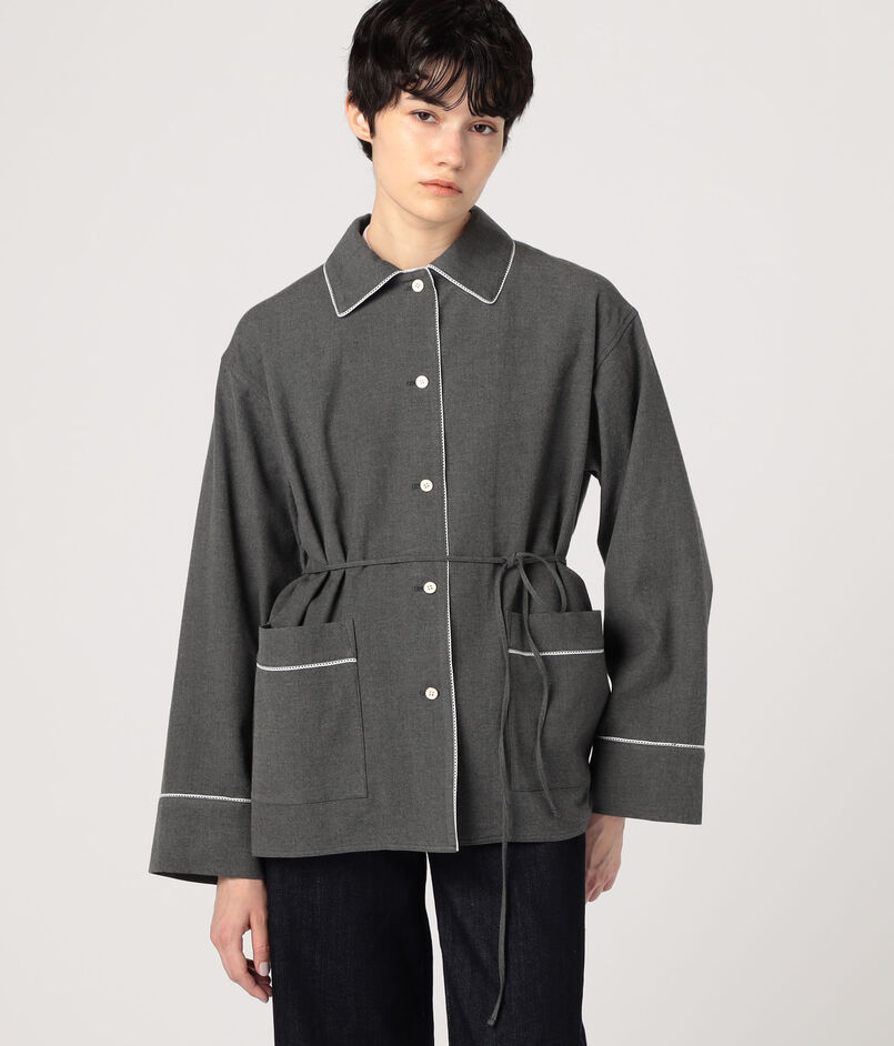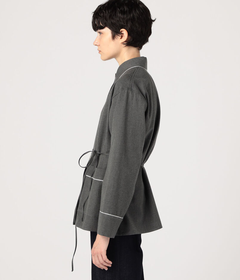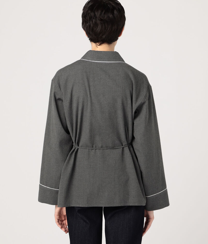 衿と前立てにレースパイピングを施し柔らかな印象に。
