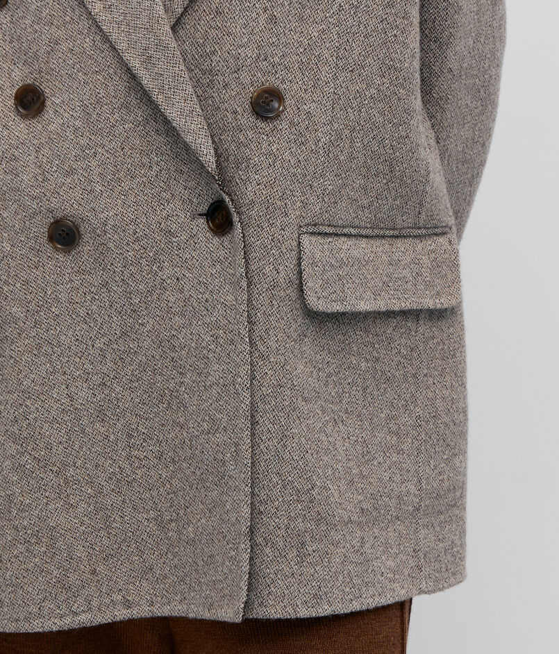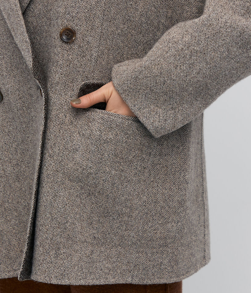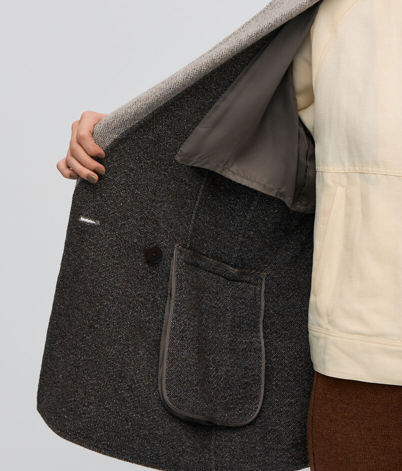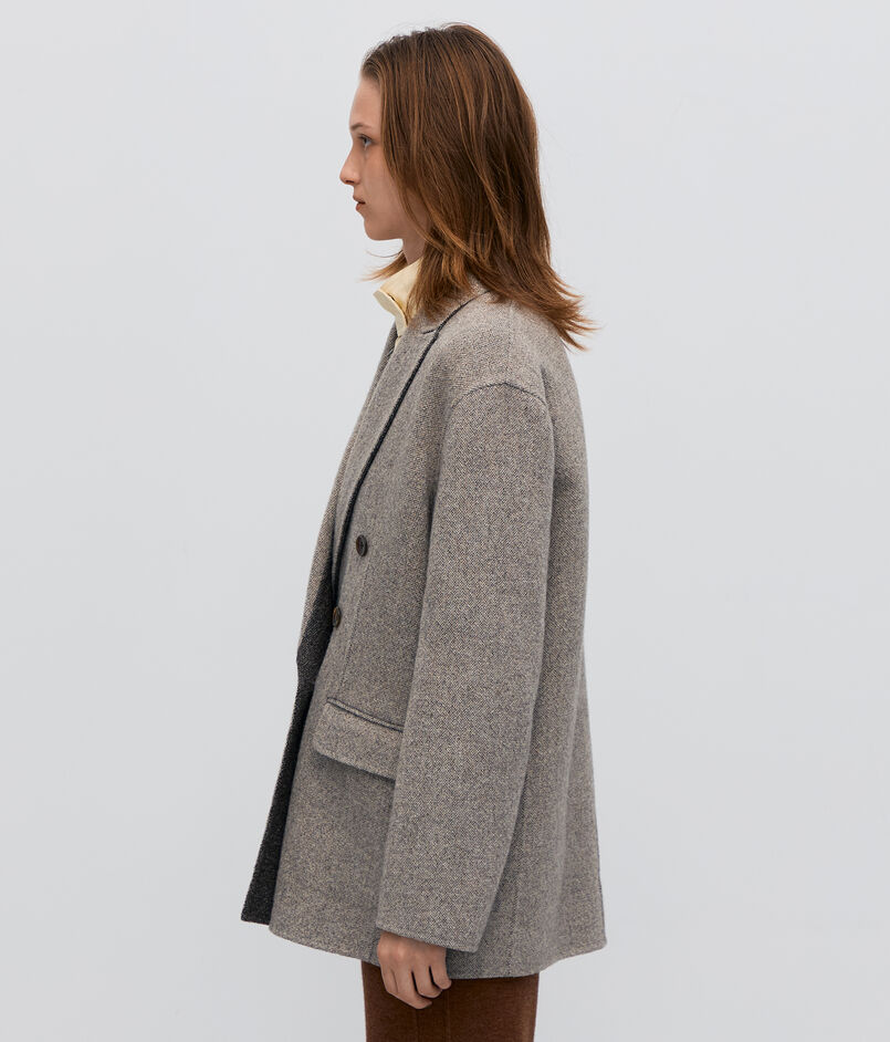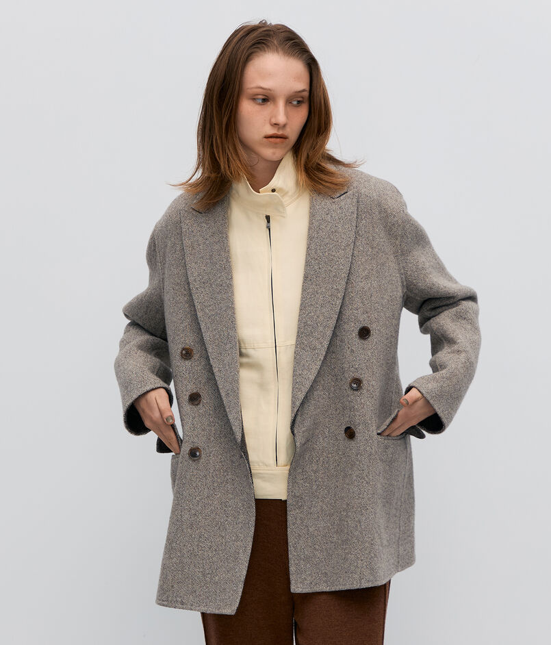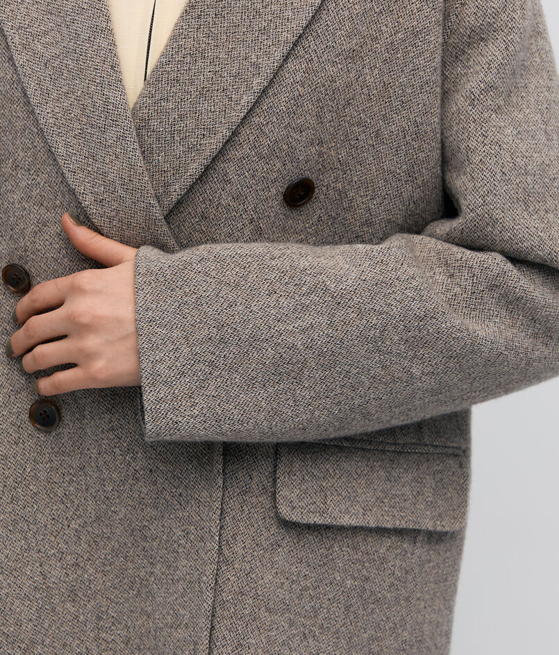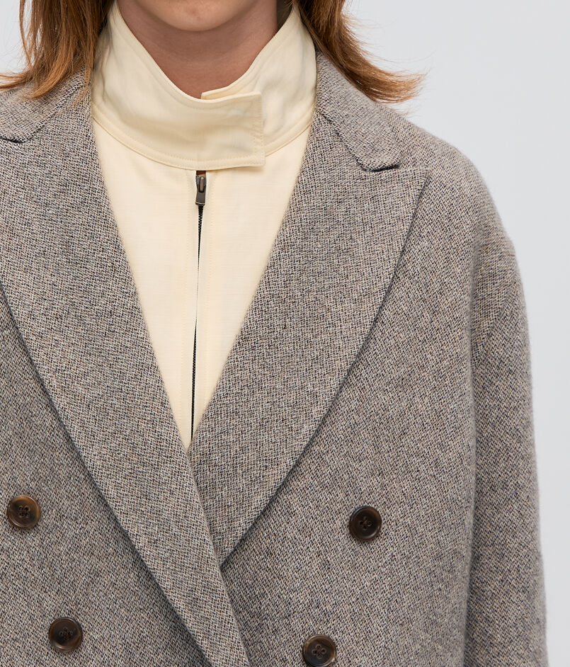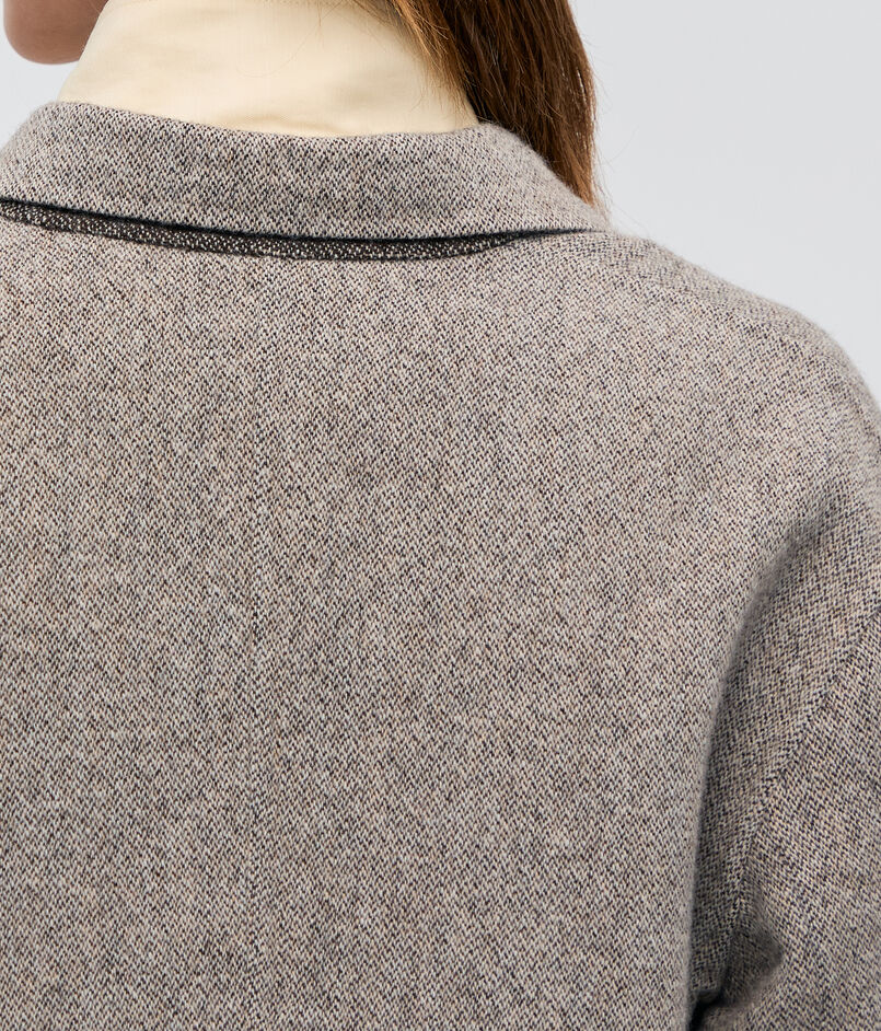上質なイタリアンツイードを使用した、リバー仕立てのジャケットコート。