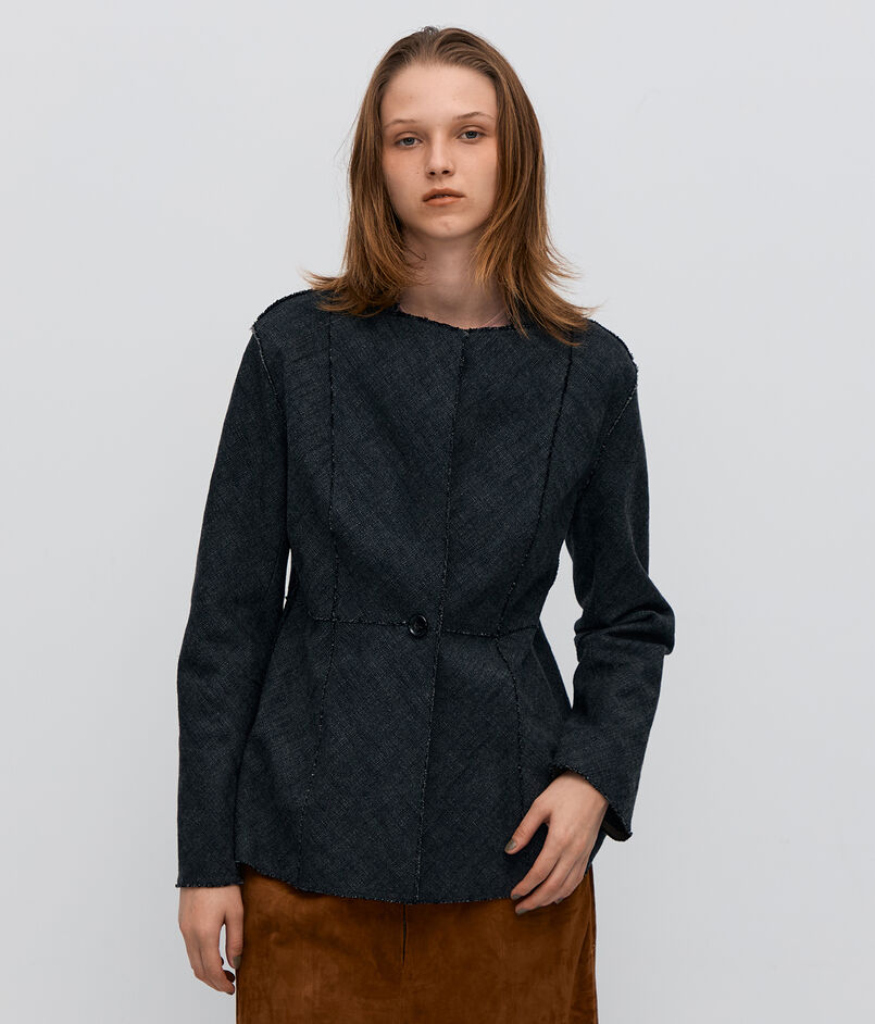 ボディコンシャスなウエスト切り替えでモードな着こなしが決まるジャケット。