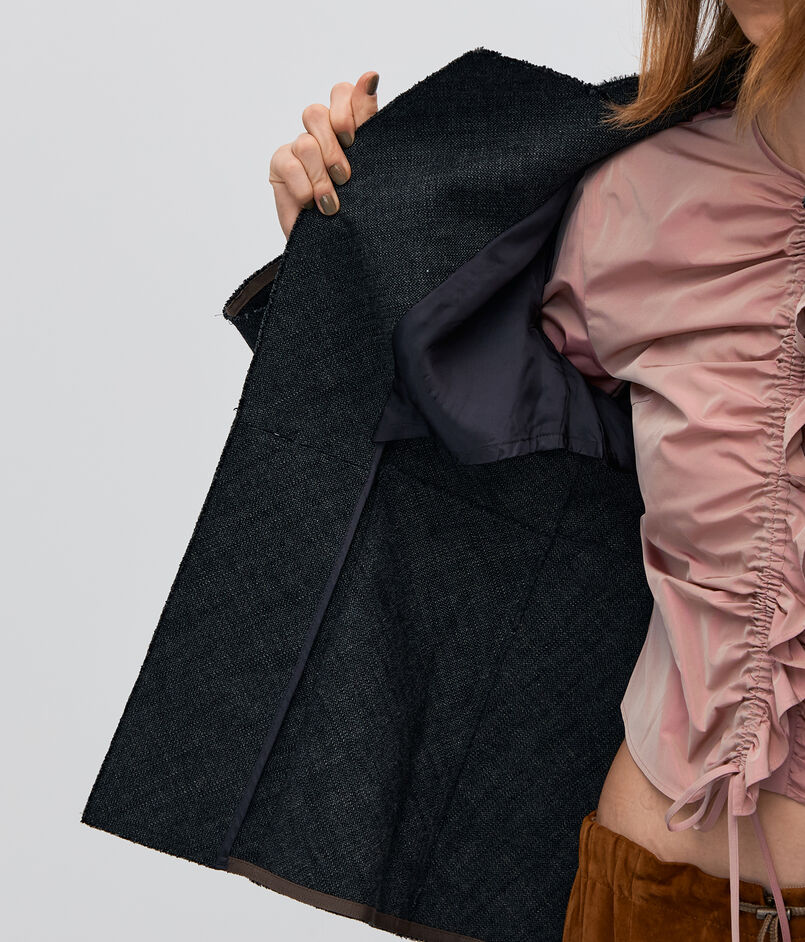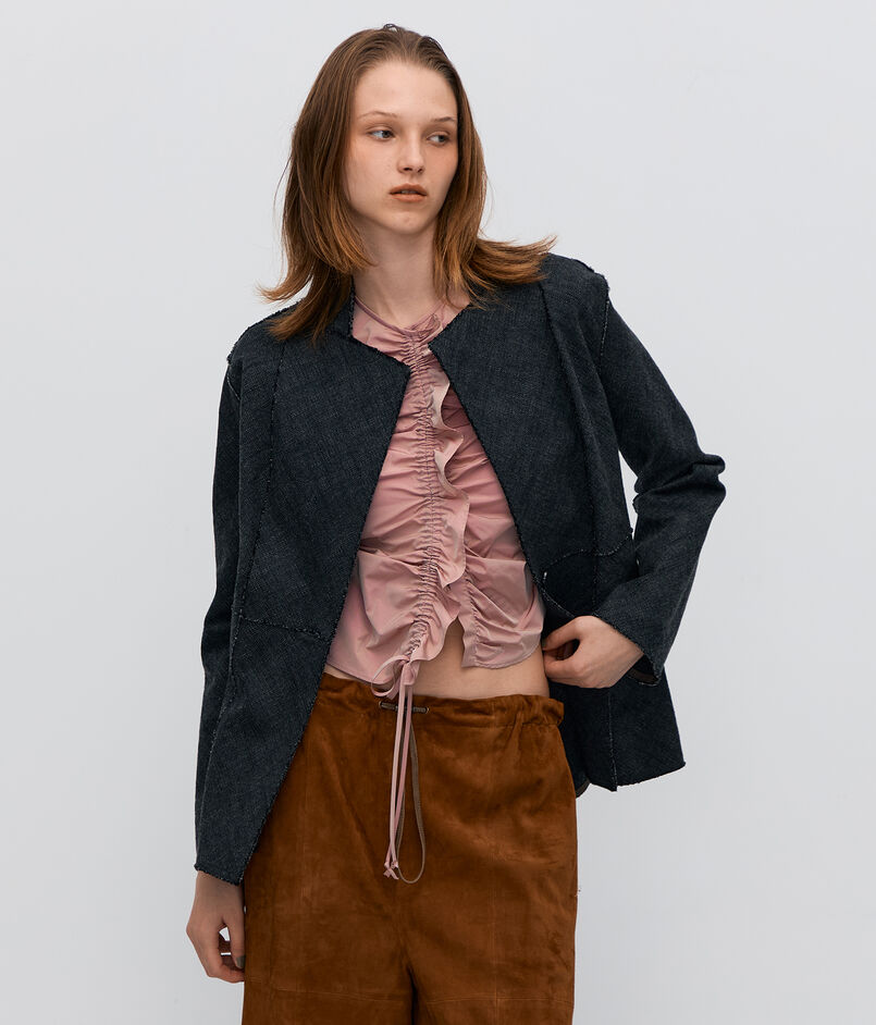フェミニンなデザインにカットオフでワイルドなディテールをプラスし、甘くなり過ぎず取り入れやすい雰囲気に仕上げました。