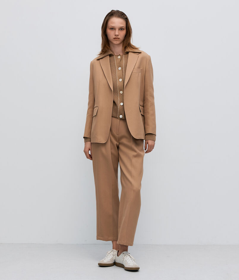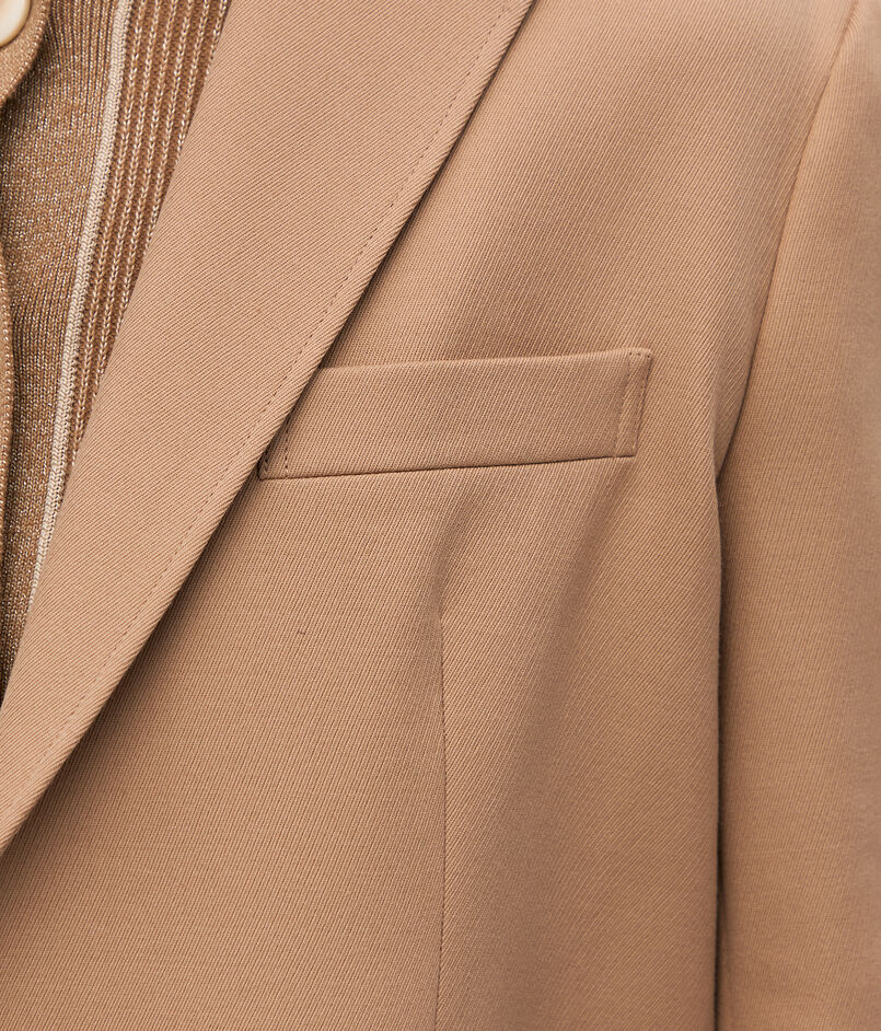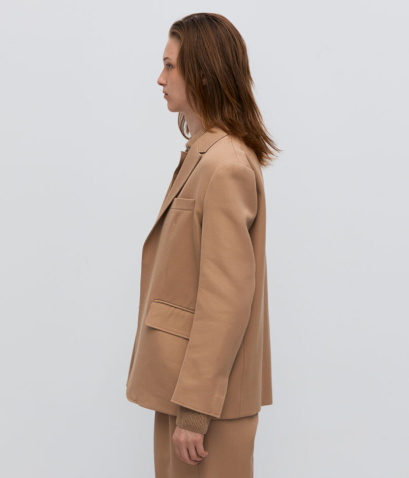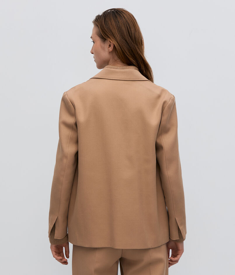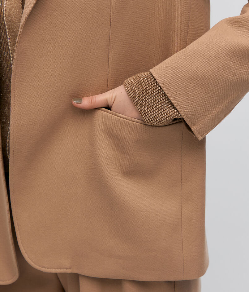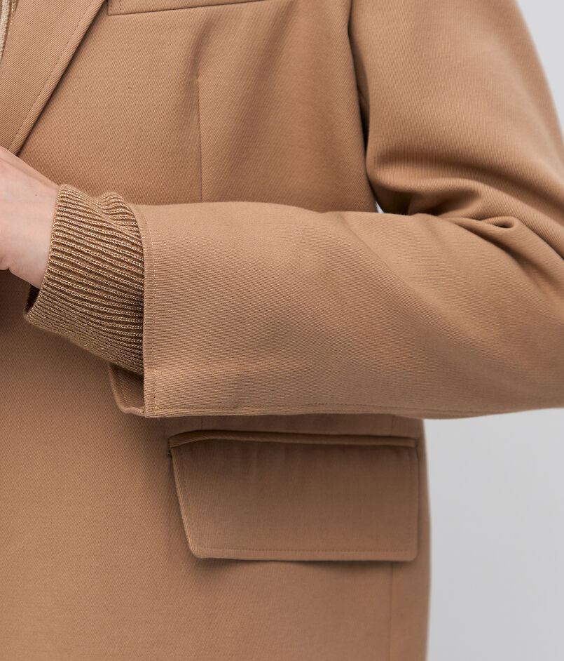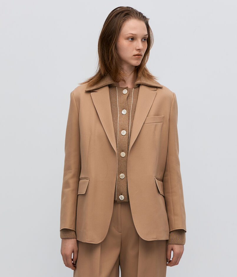畝のしっかりと立ったコットンウールのトリコチン素材を使用したジャケット。