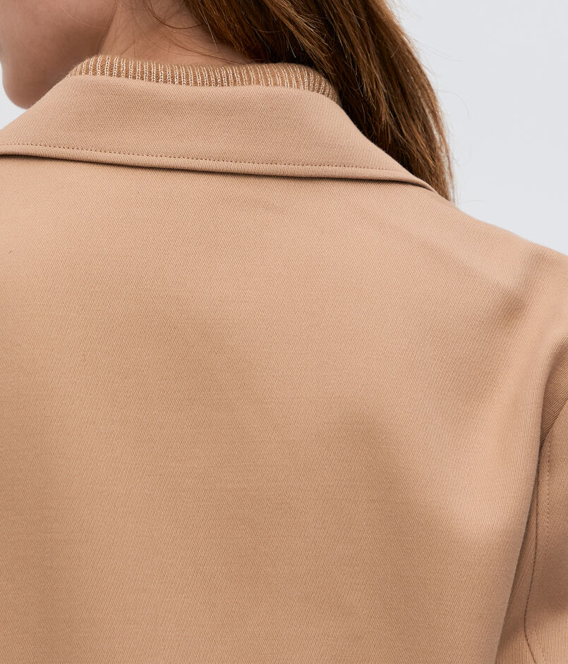 ボクシーなシルエットとボタンレスのデザインで、羽織るだけで洗練された印象に仕上がります。