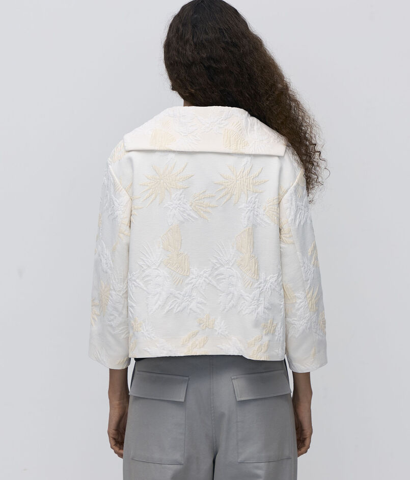 コンパクトなシルエットで上品に仕上げ、ボトムのバランスを選ばずお召しいただけます。