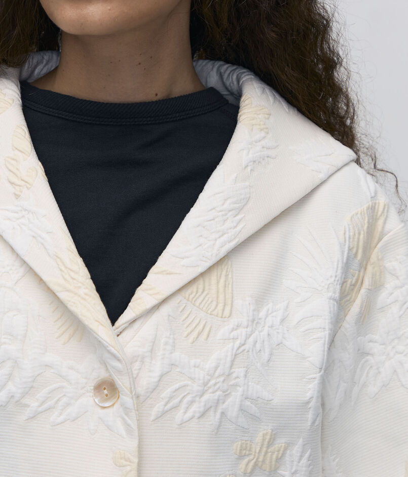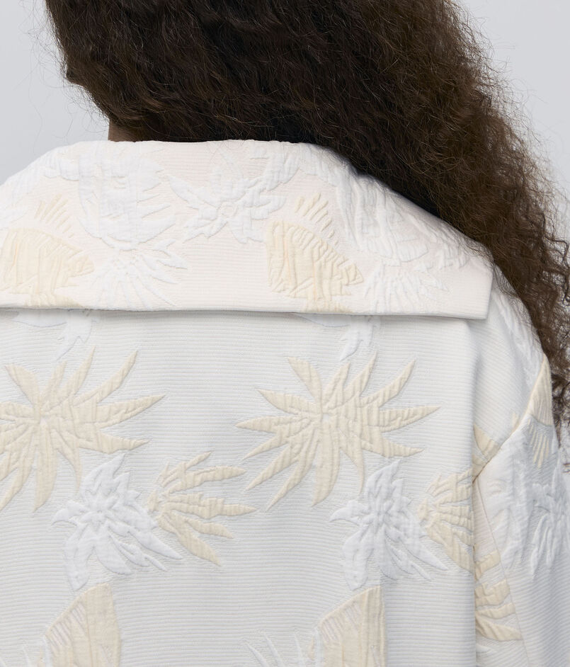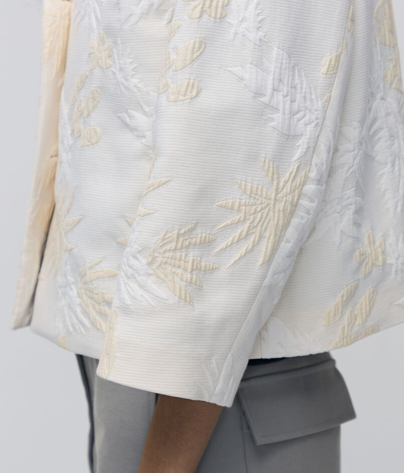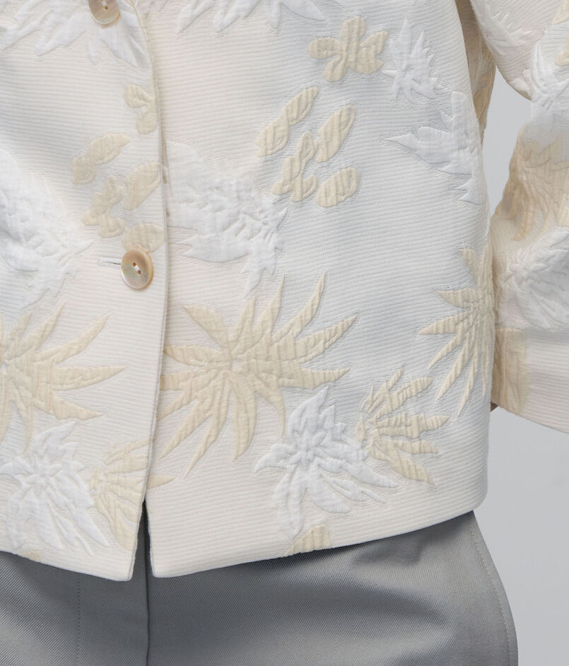ホワイトと生成りのカラー使いがより柄を引き立たせています。