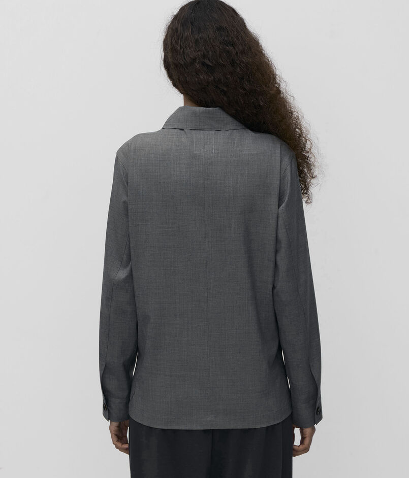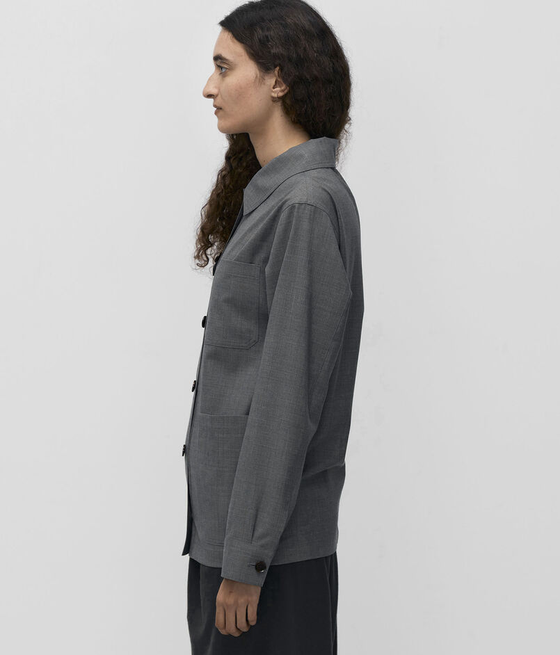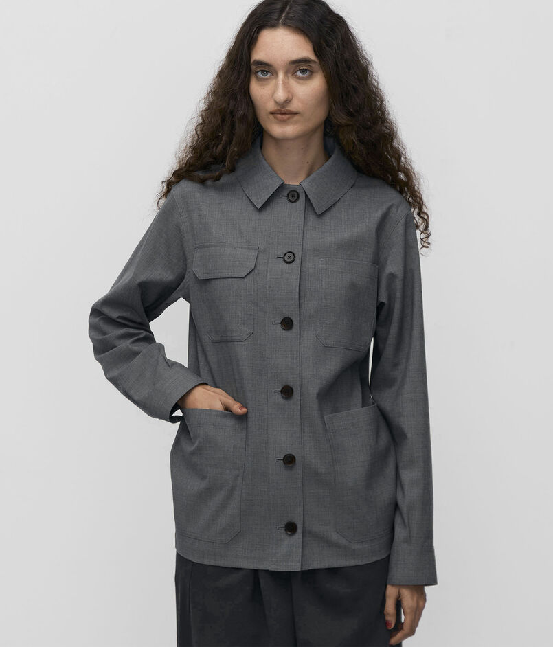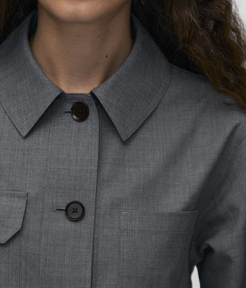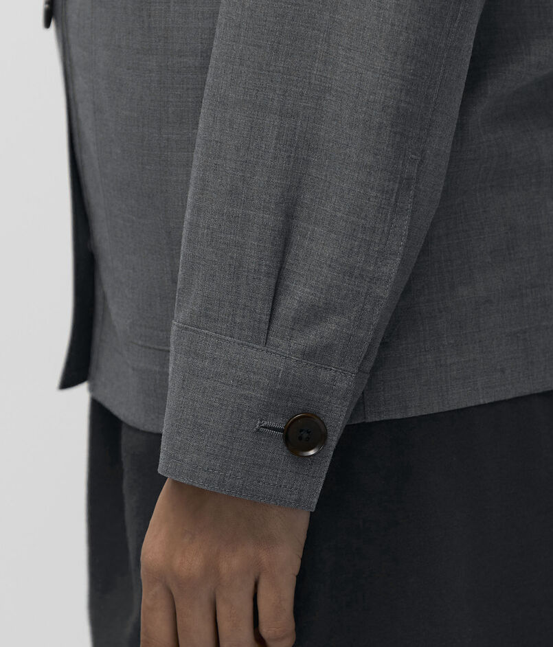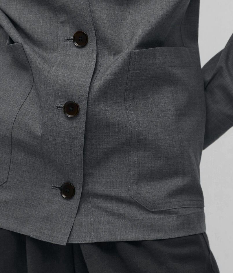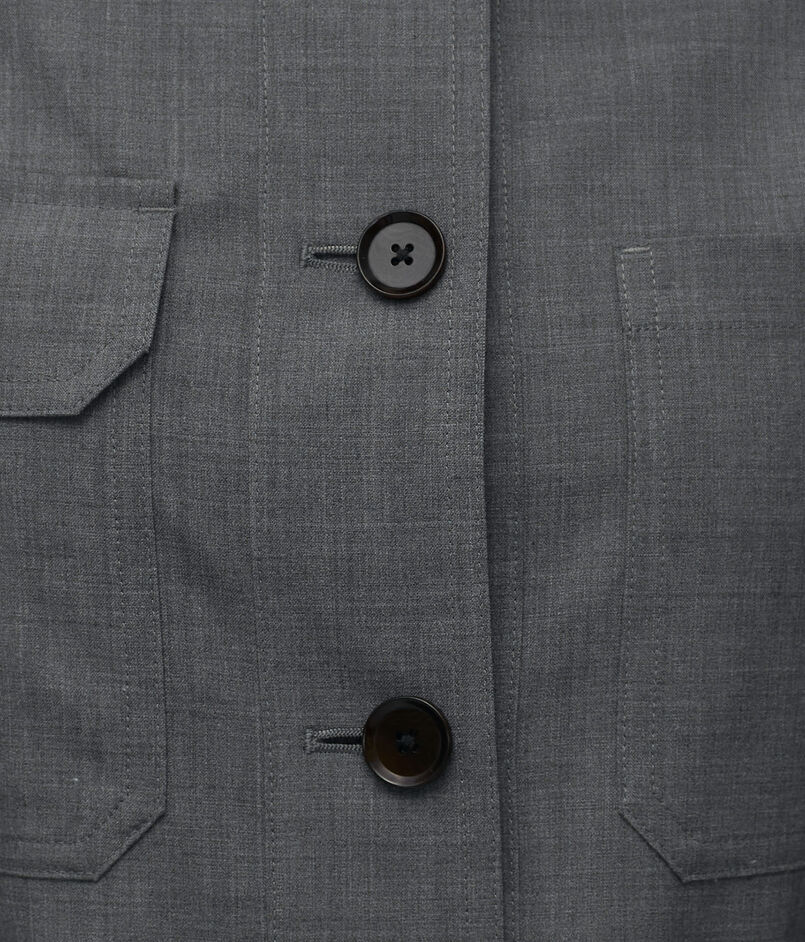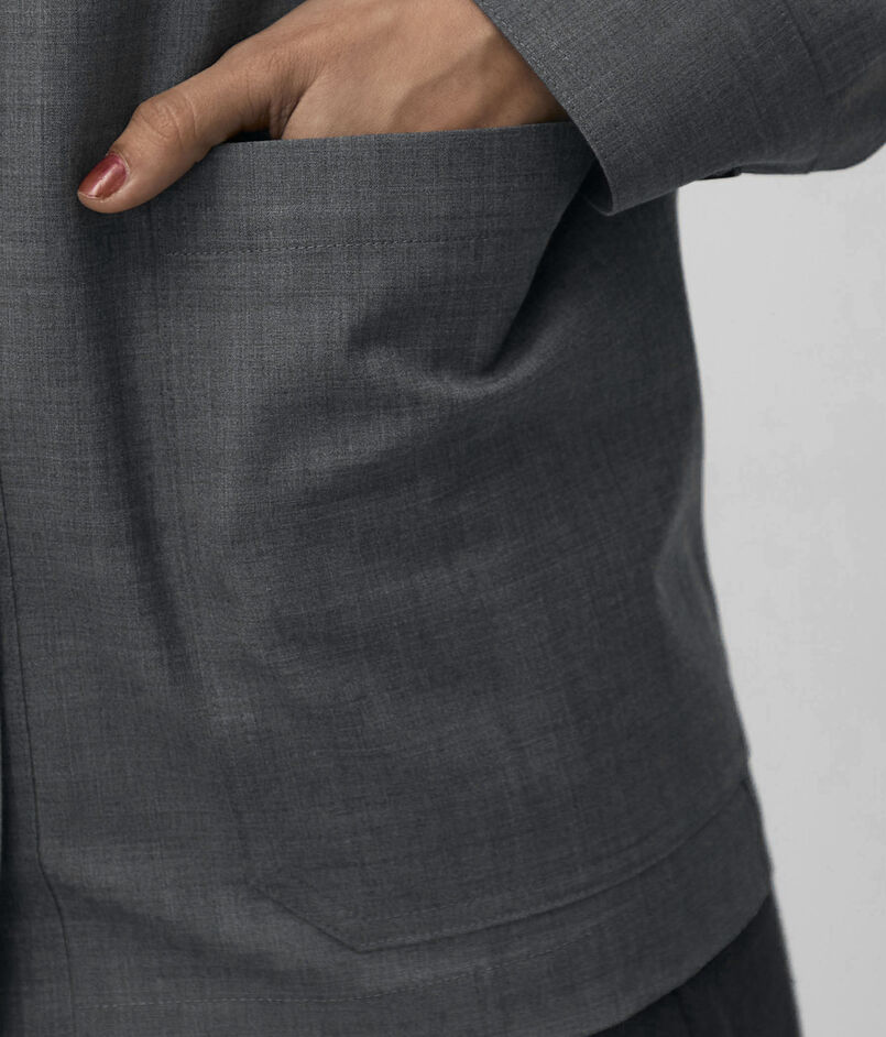 胸元のフラップポケットでカジュアルなディテールを取り入れることで、上品ながらもどこか抜け感のある着こなしが決まります。