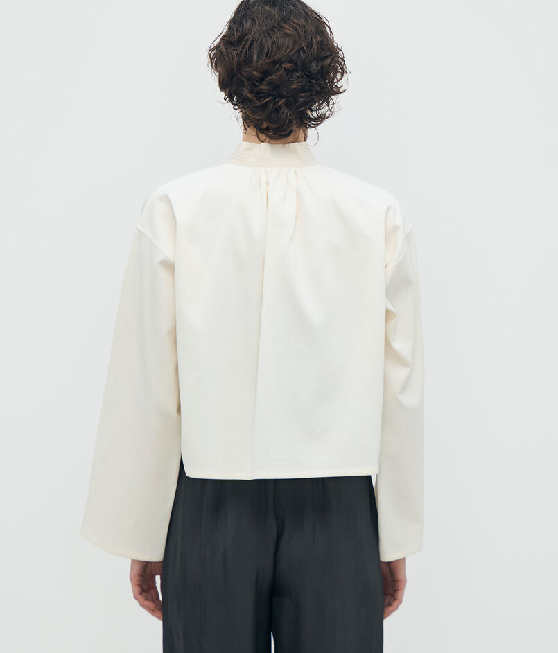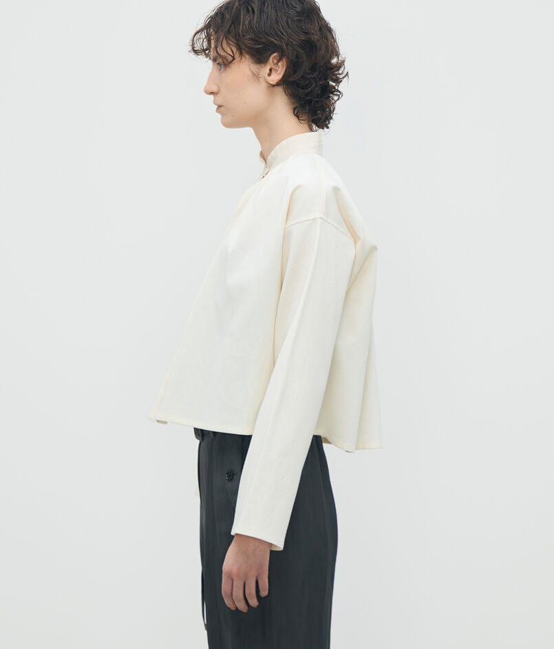 短めの着丈で、ハイウエストのパンツやロングスカートとも好相性。