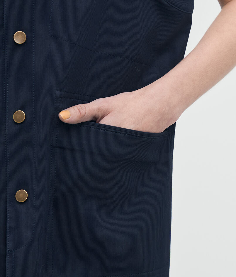 フロントのドットボタンや機能的なポケットなど、ミニマルながら細部までこだわって仕上げています。