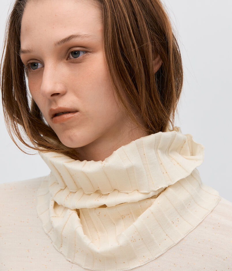 細番手の美しいウールに小さなスパンコールを縫い込んで編み上げたニットシリーズ。