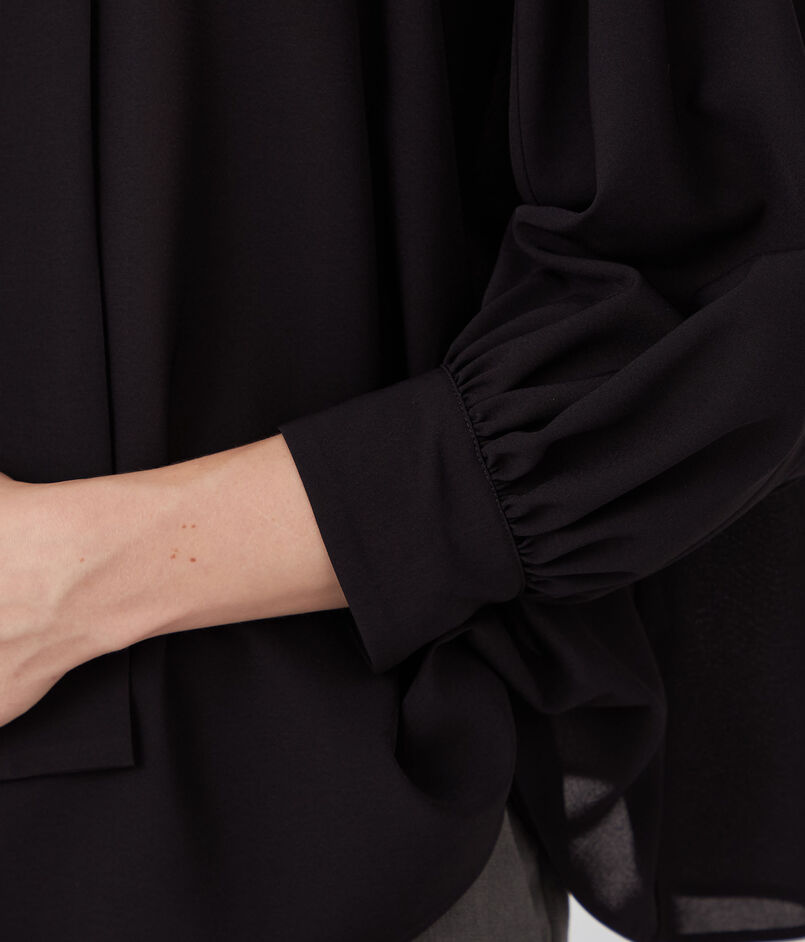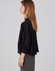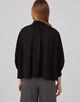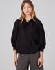 さらりとしたタッチと適度な透け感が新鮮なトロピカル素材を使用したブラウス。