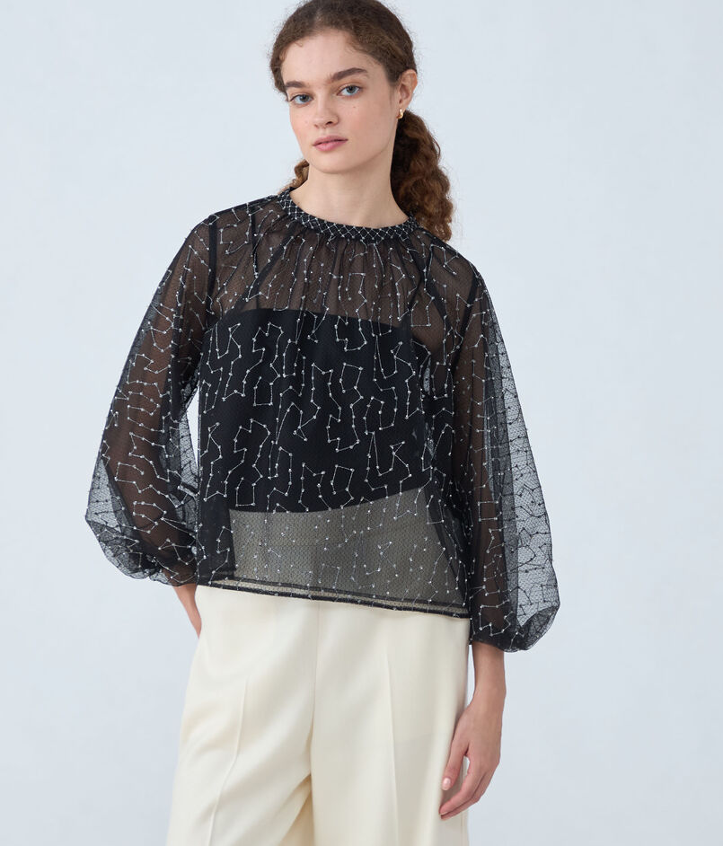 細番手の素材をベースに星座をモチーフにアレンジした柄が目を惹くエンブロイダリーシリーズ。