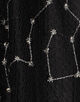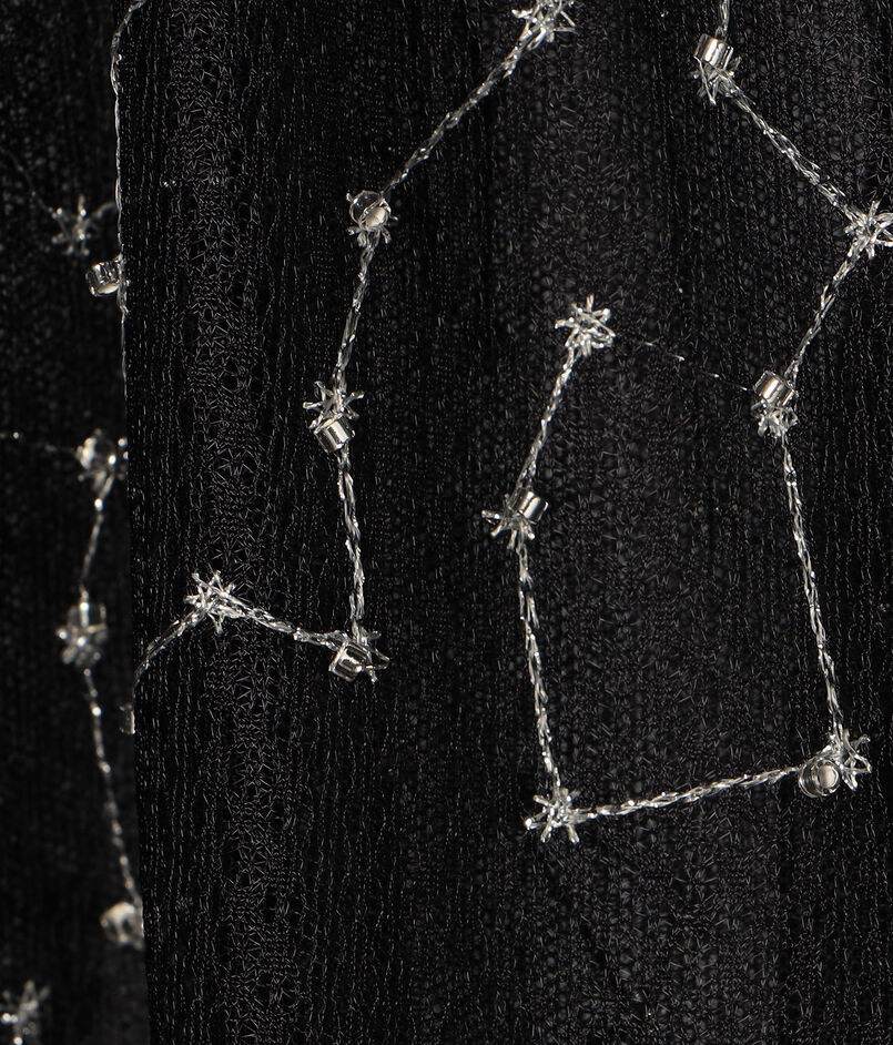 シルバーのラメ糸とシルバービーズで夜空に浮かぶ星座群を表現しています。