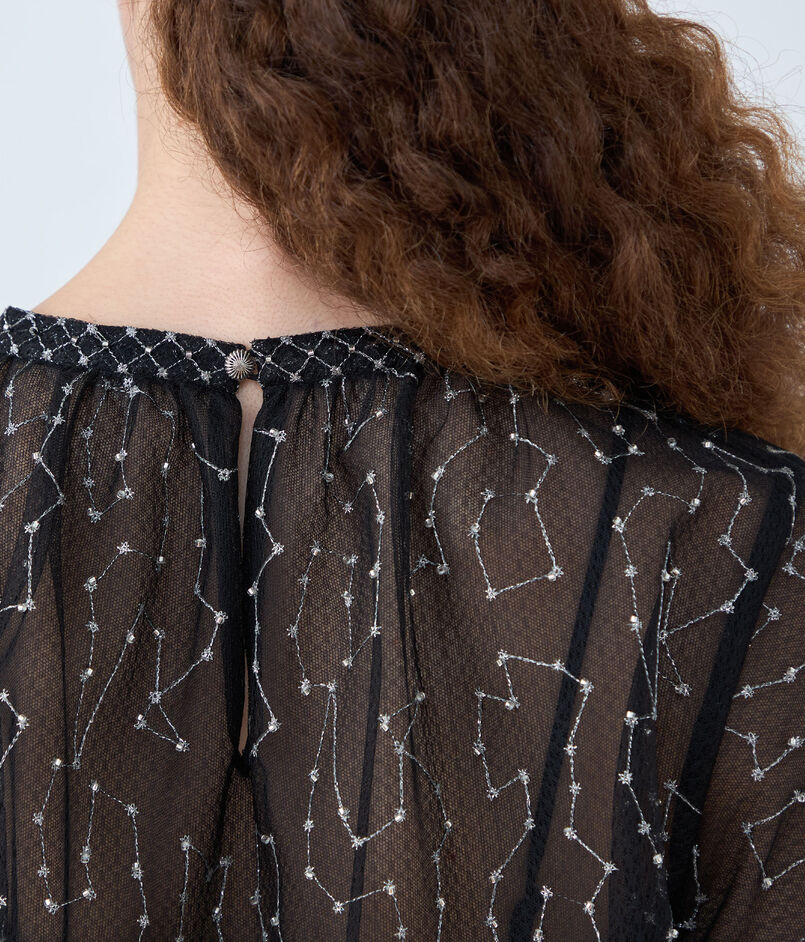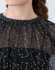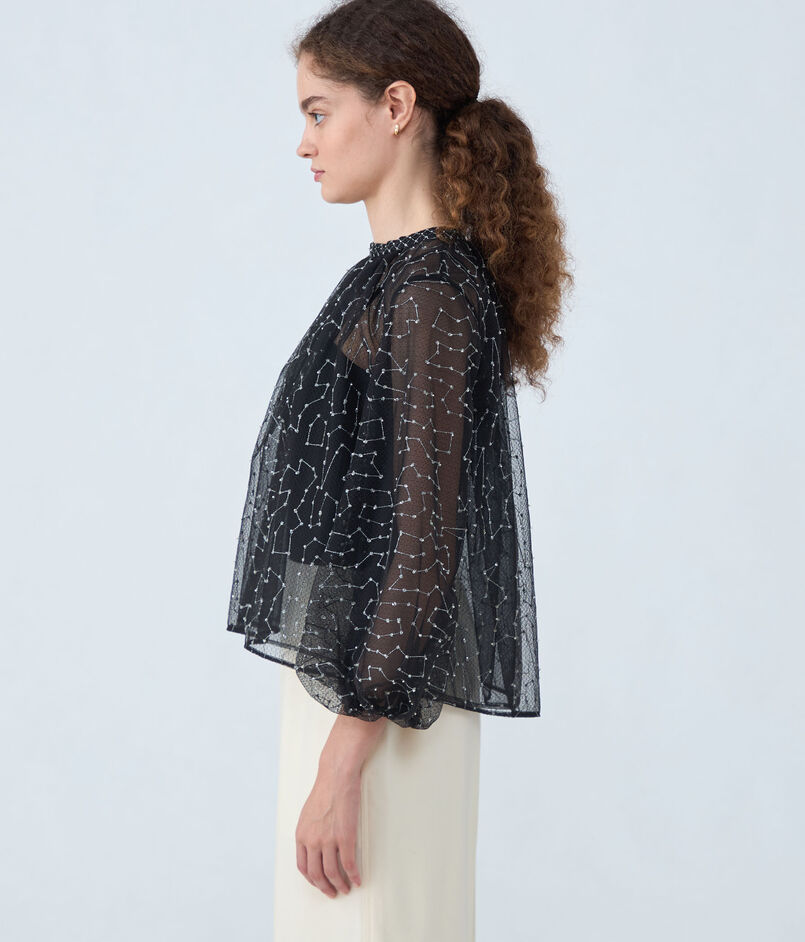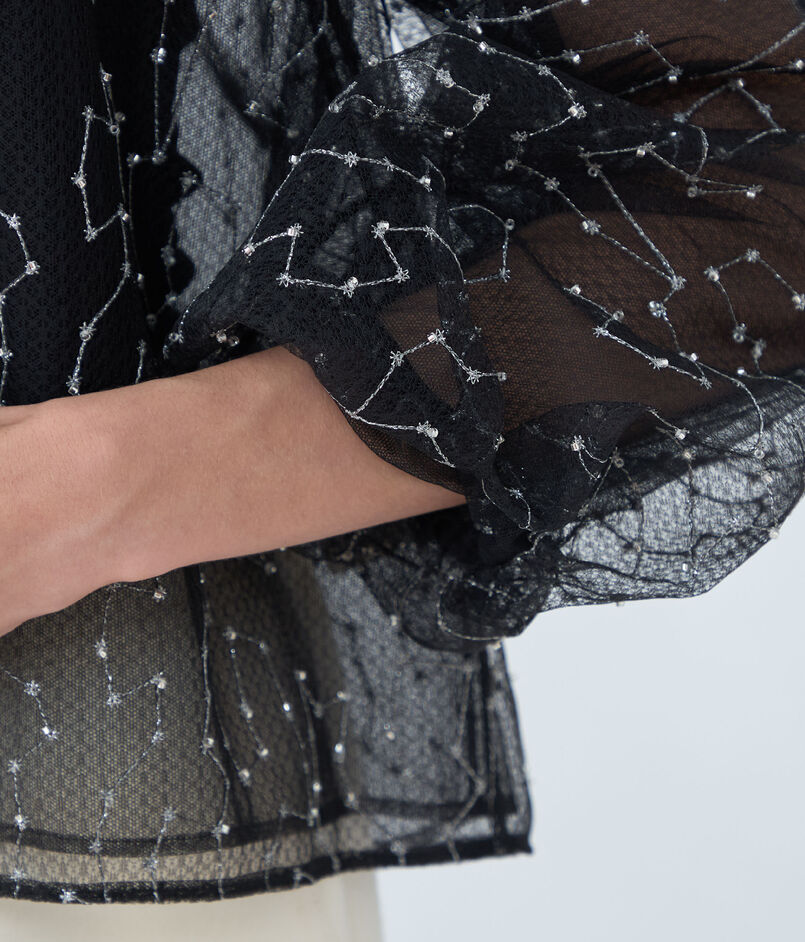 ビーズチュールエンブロイダリー スタンドボートネックブラウス