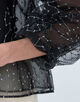 裏地に薄手のチュールを重ねることで着用時の透け感を柔らかくしています。