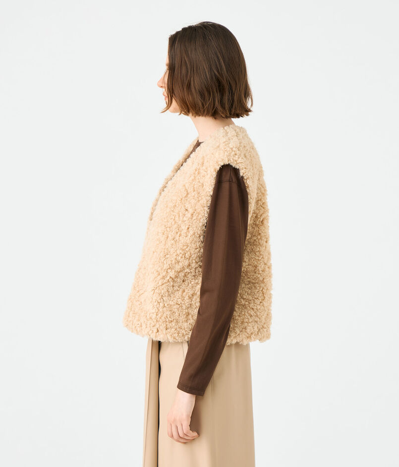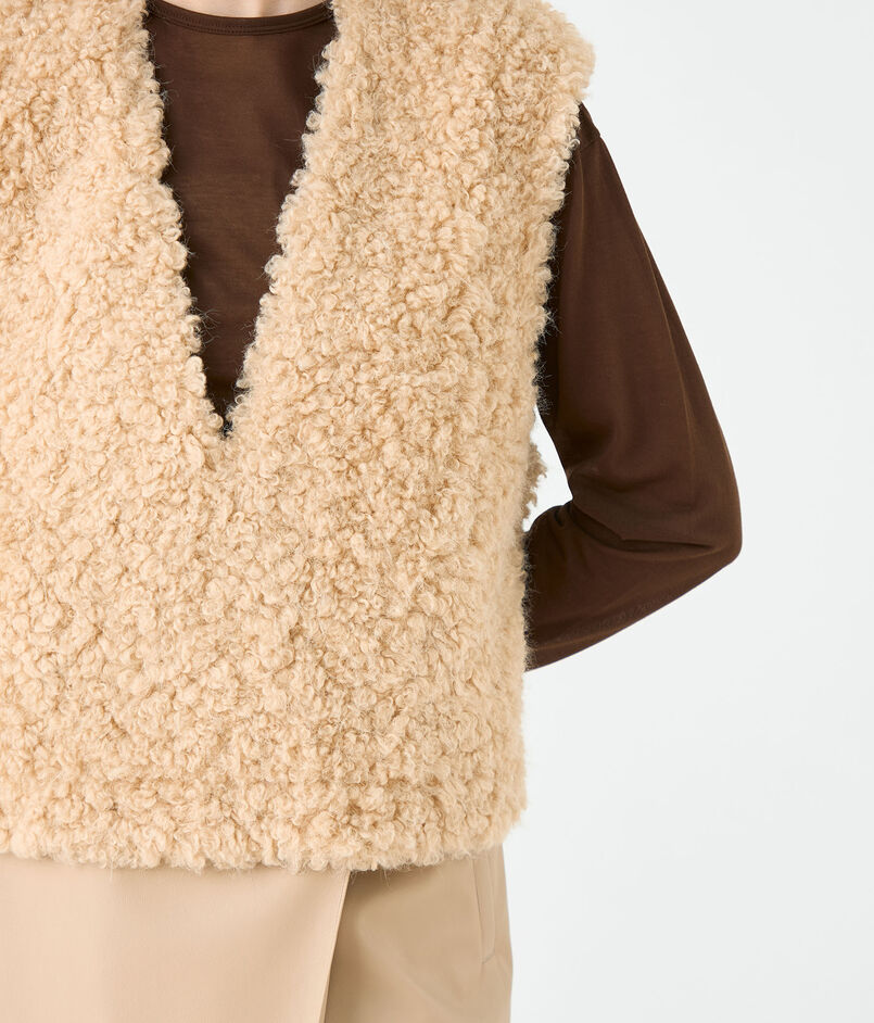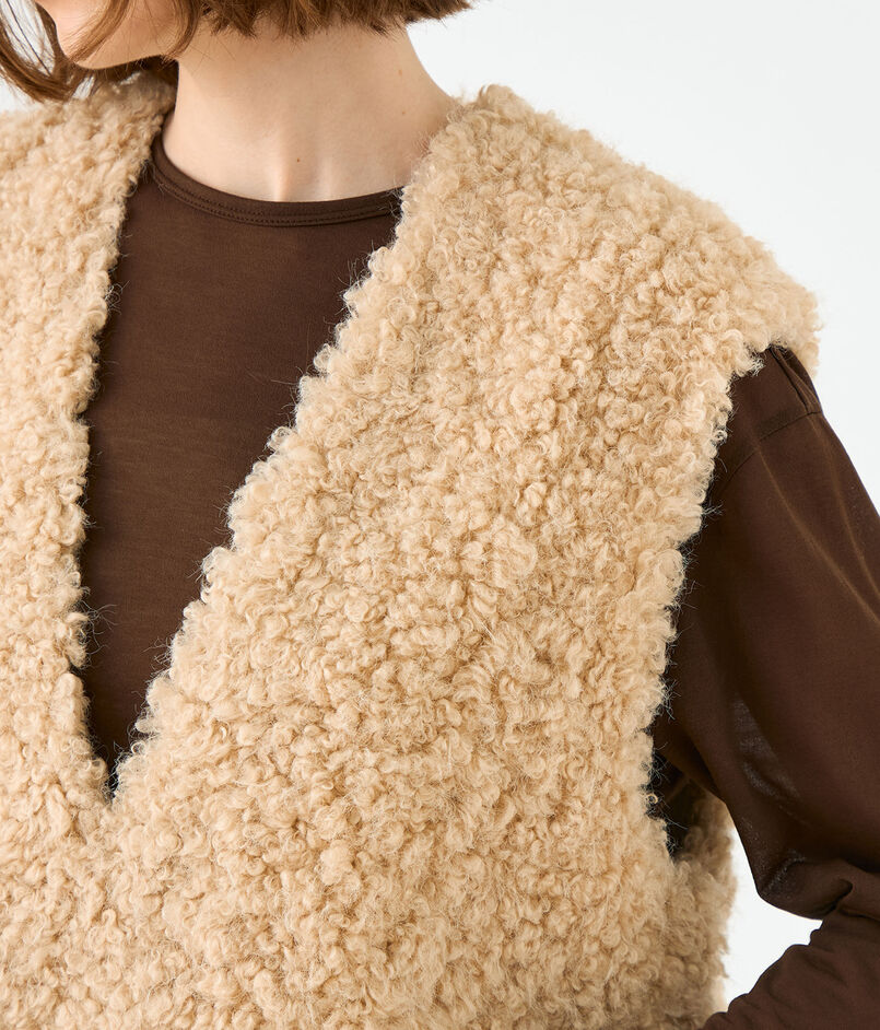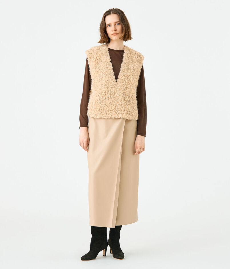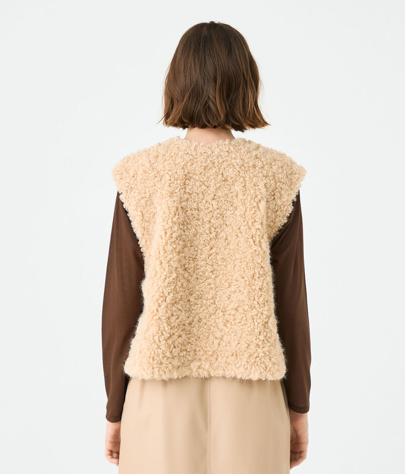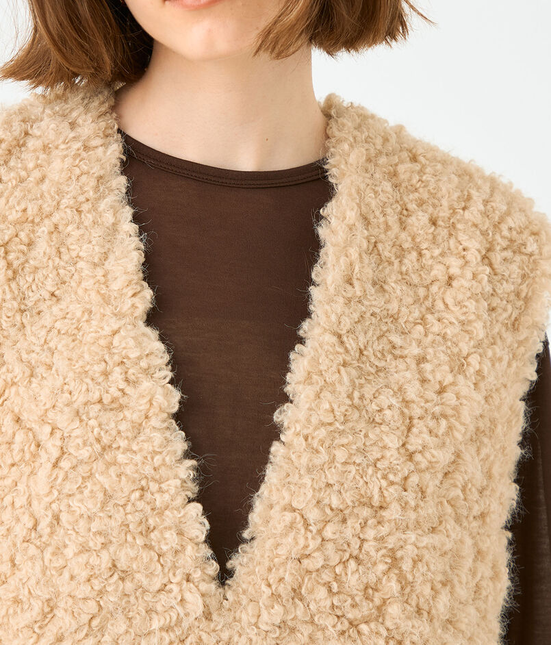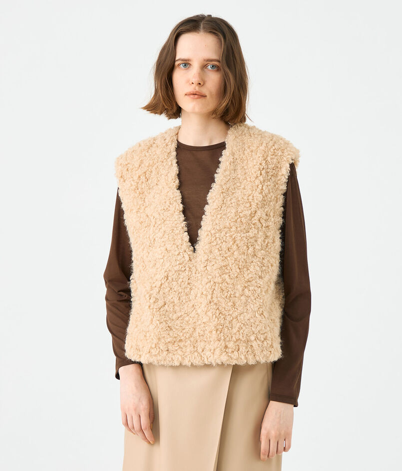 カーリーとストレートがミックスした、まるでアンゴラのような毛並みが特徴的なフェイクファー素材を使用したベスト。