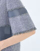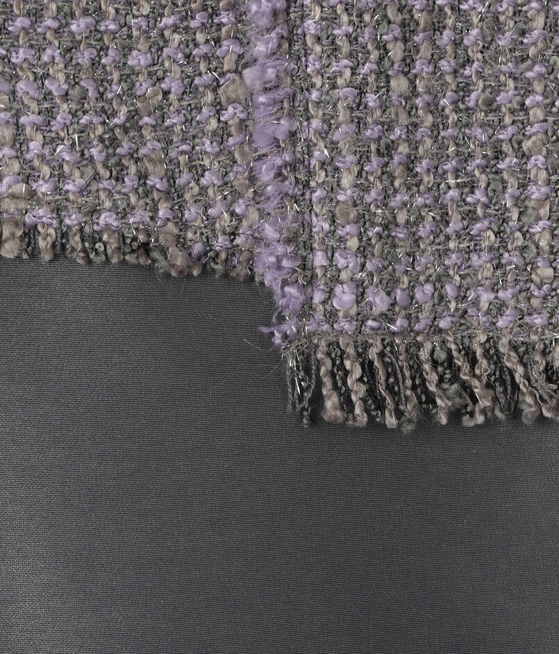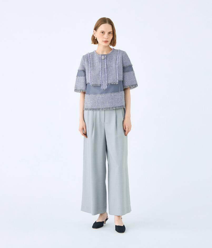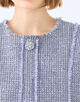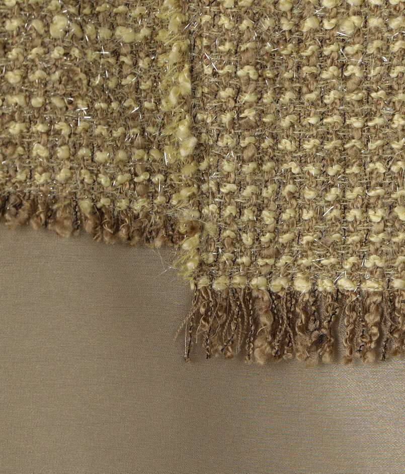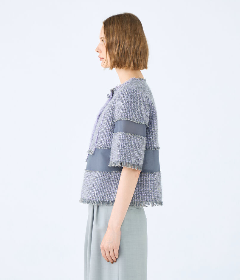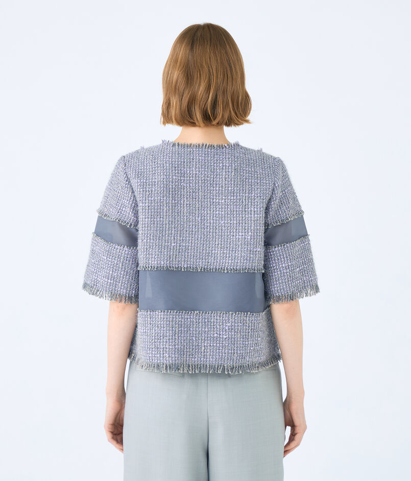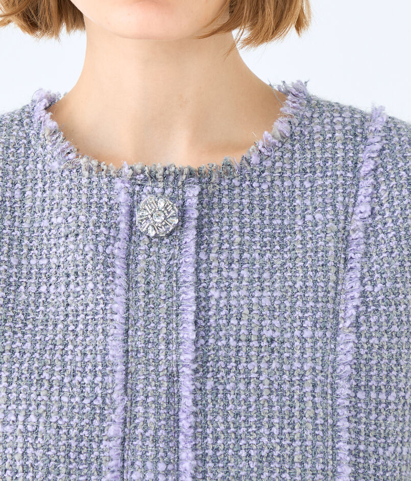 ラメのような輝きを持つスパーク糸が特徴のカラーツイード素材を使用したトップス。