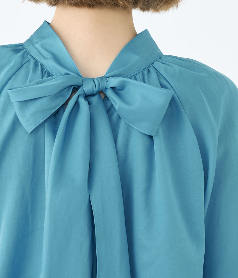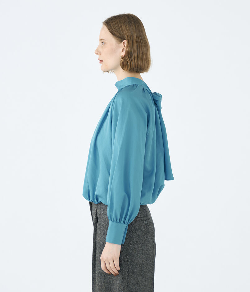 前後を逆にして着用でき、気分や着こなしに合わせてスタンドカラーとボウタイ、異なる2つの表情を楽しめる2-way仕様。