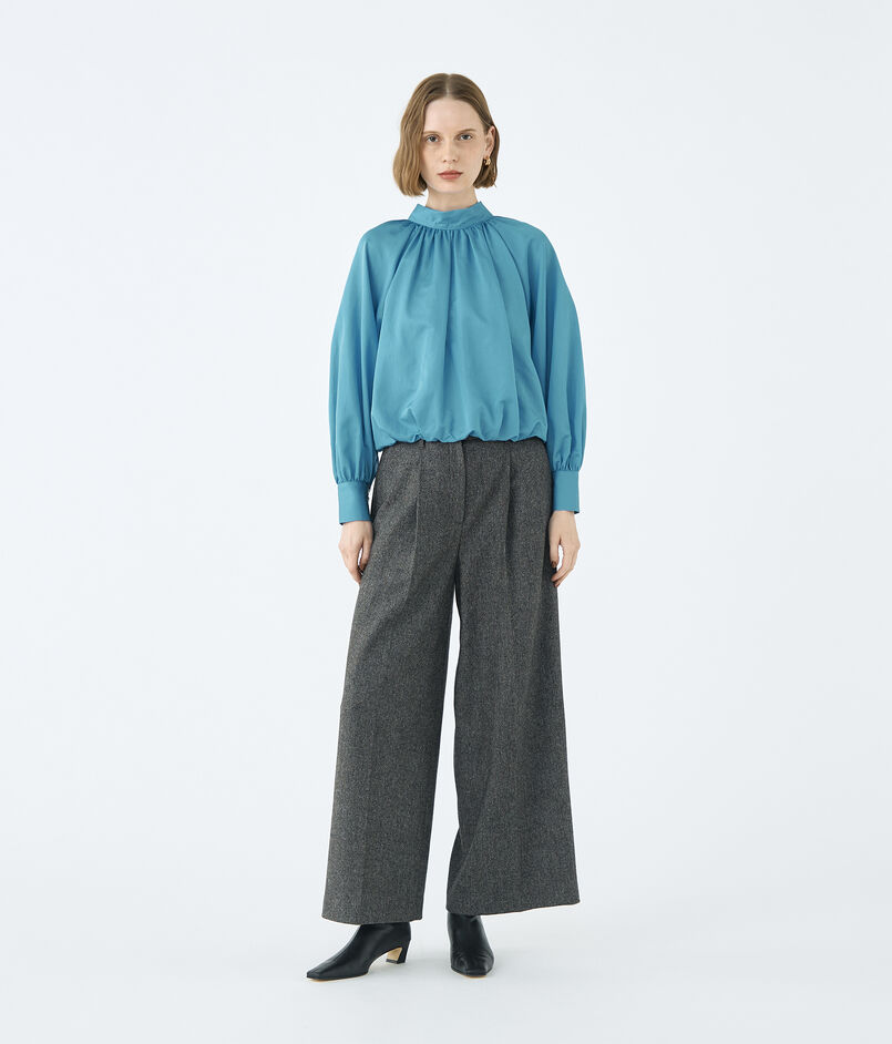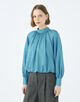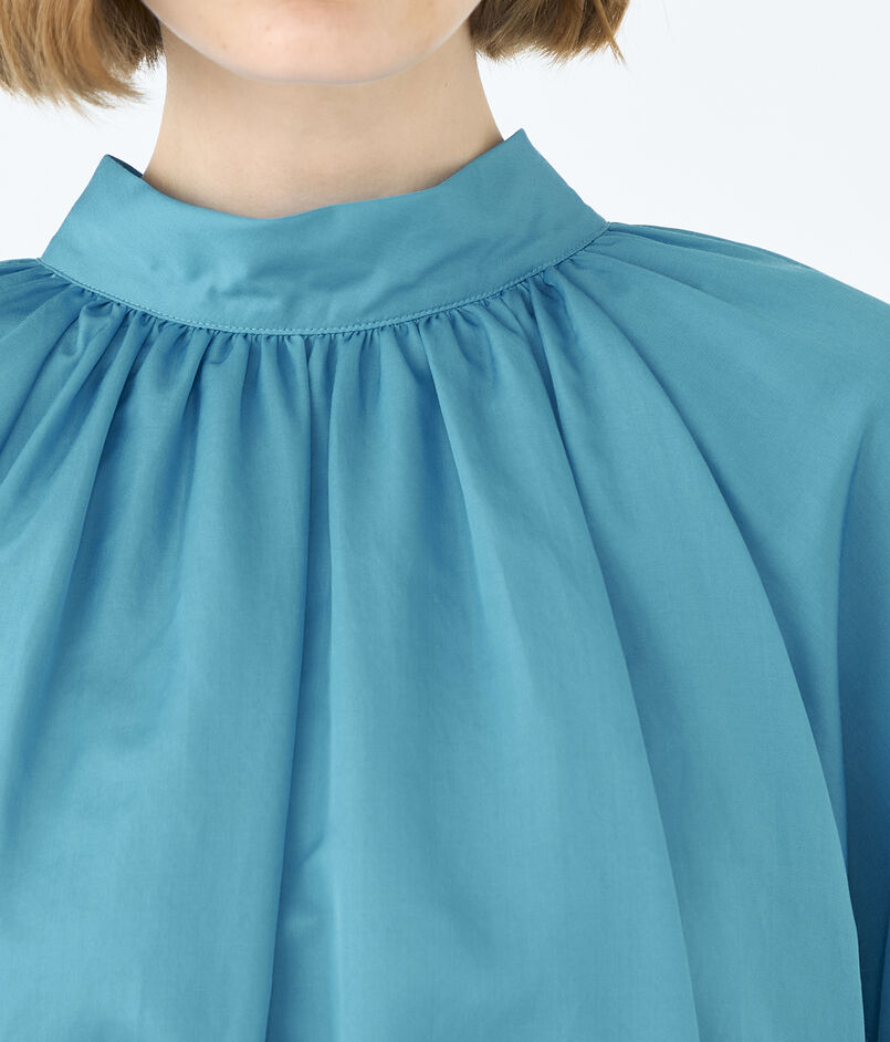 襟ぐりと裾にたっぷりと寄せたギャザーディテールが生み出すふんわりと丸みのあるシルエットでフェミニンな印象の一枚。