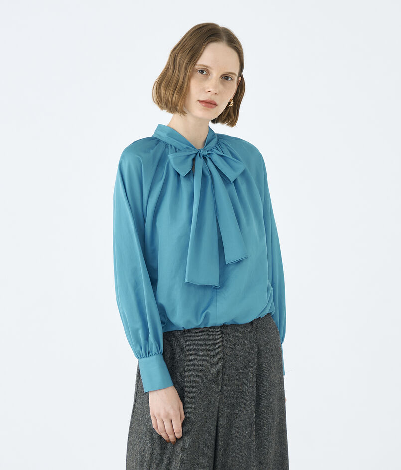 良質な細番手の糸を使用した、〈Ballsey〉定番のコットンシルクサテン素材を使用したブラウス。