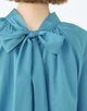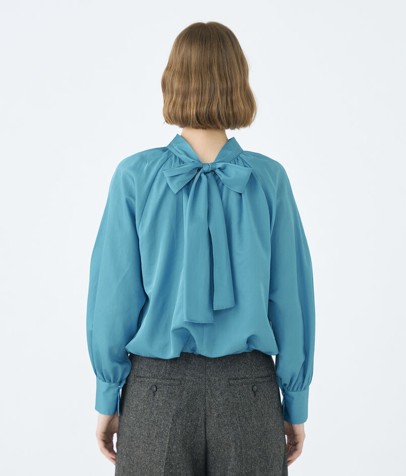 前後を逆にして着用でき、気分や着こなしに合わせてスタンドカラーとボウタイ、異なる2つの表情を楽しめる2-way仕様。