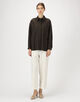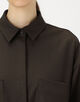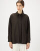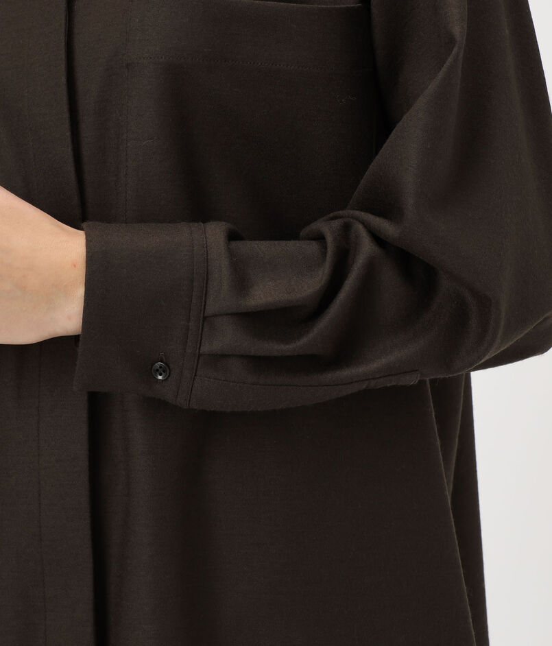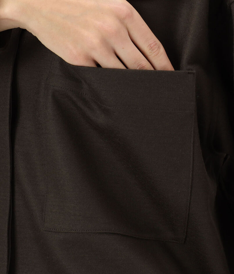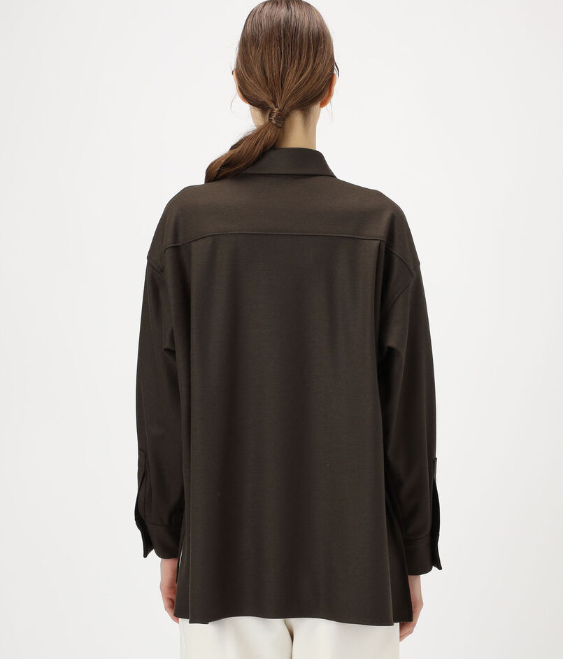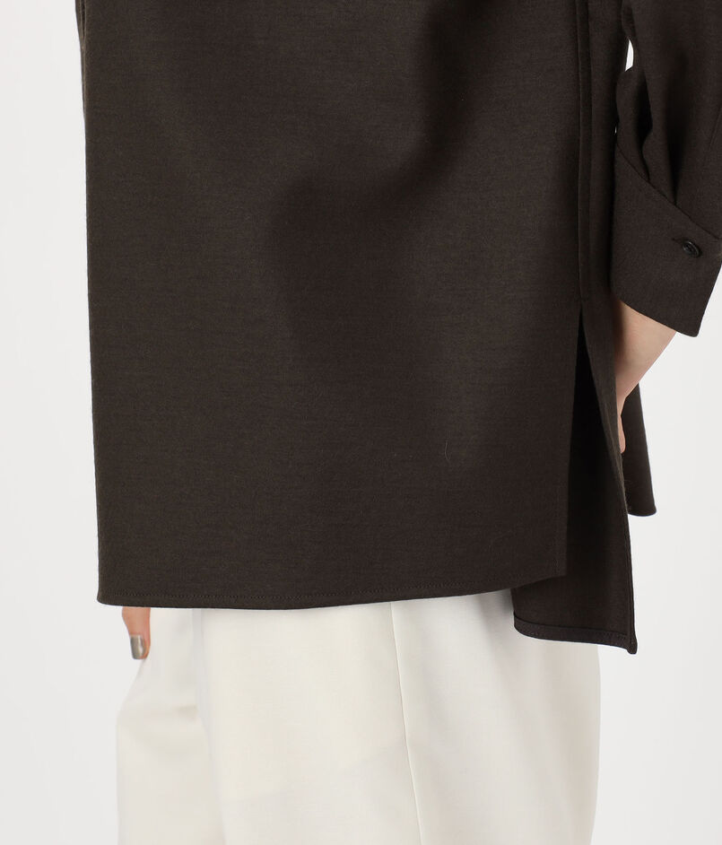 シンプルなシャツデザインをヒップの隠れるオーバー気味のバランスに仕上げることで、エフォートレスでシックな雰囲気の一枚。