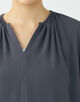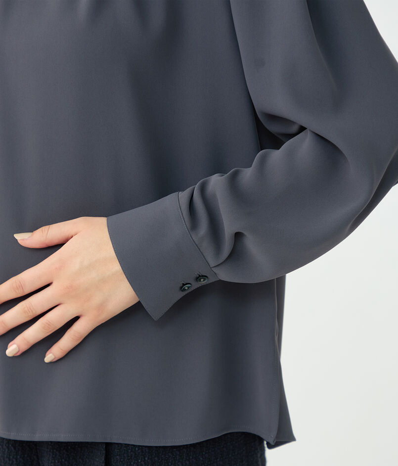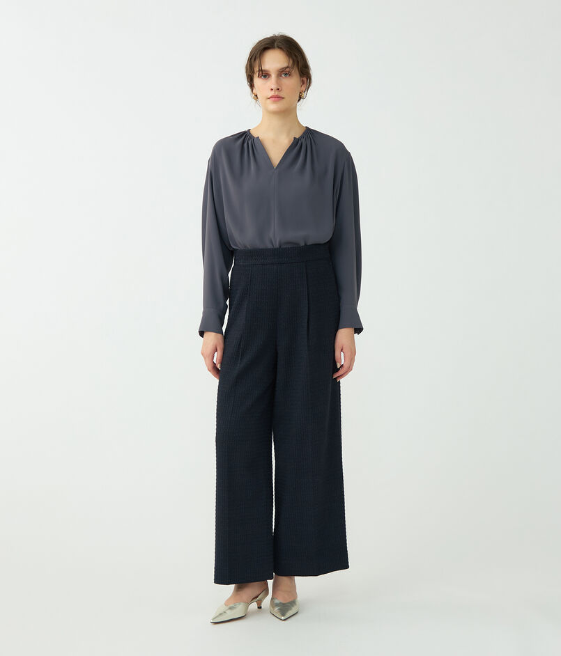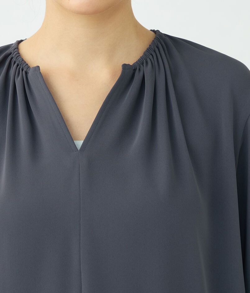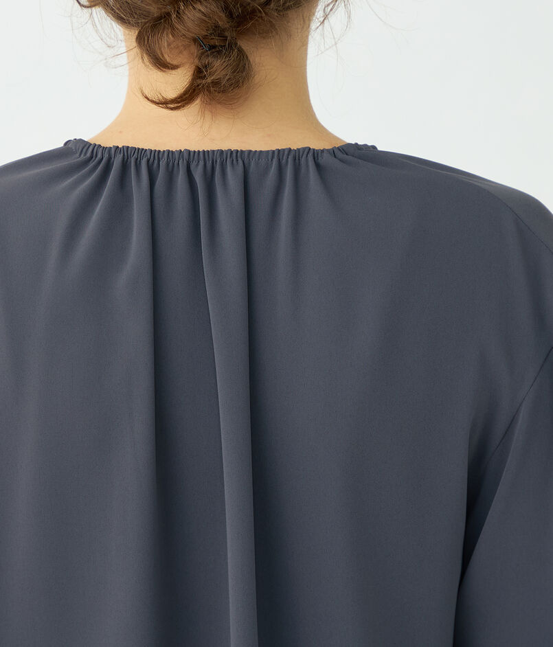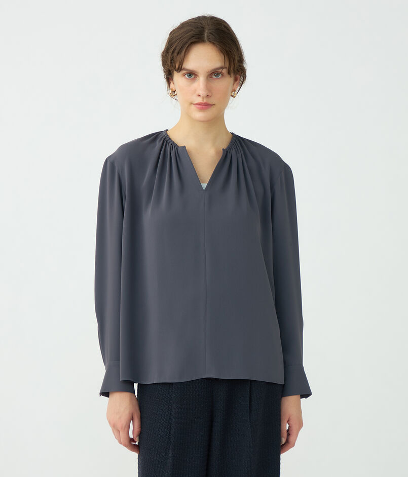 ギャザーネックブラウスは襟ぐりに寄せたギャザーやタックで丸みを出すことで、シンプルながらも一枚でさまにな一着です。